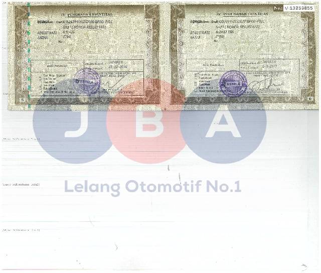 BATAS PELUNASAN 17:00 WIB HARI H LELANG // WAJIB TTD SURAT PERNYATAAN // NO RANGKA FISIK DAN BPKB BERBEDA DENGAN STNK/NOTICE1 DIGIT // PEMENANG LELANG WAJIB MENANDATANGANI SURAT PERNYATAAN BERMATERAI DI JBA // AN PT EX NOPOL B 4 RIG // WARNA DI DOC HITAM HITAM
