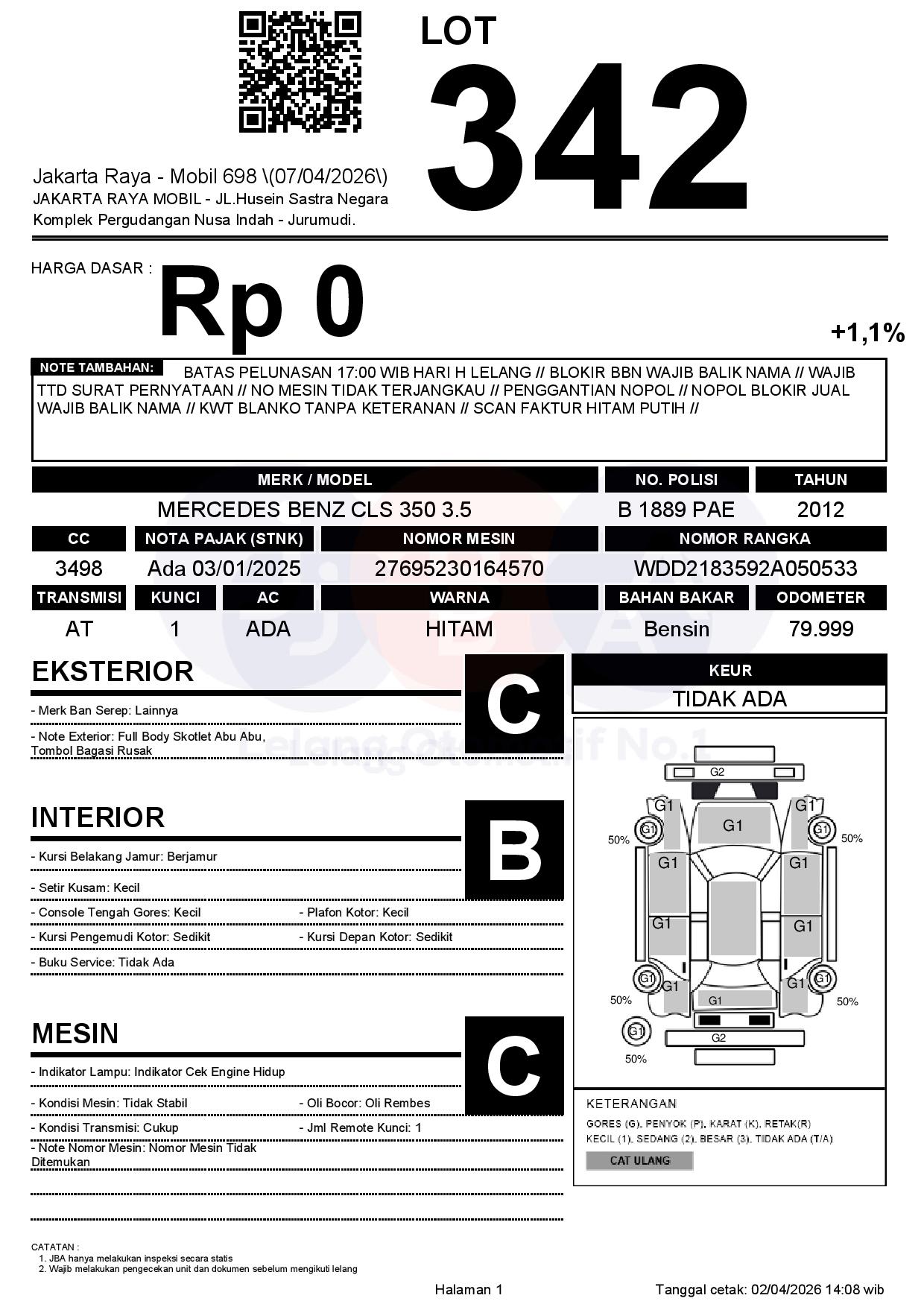 BATAS PELUNASAN 17:00 WIB HARI H LELANG // BLOKIR BBN WAJIB BALIK NAMA // WAJIB TTD SURAT PERNYATAAN // NO MESIN TIDAK TERJANGKAU // PENGGANTIAN NOPOL // NOPOL BLOKIR JUAL WAJIB BALIK NAMA // KWT BLANKO TANPA KETERANAN // SCAN FAKTUR HITAM PUTIH //