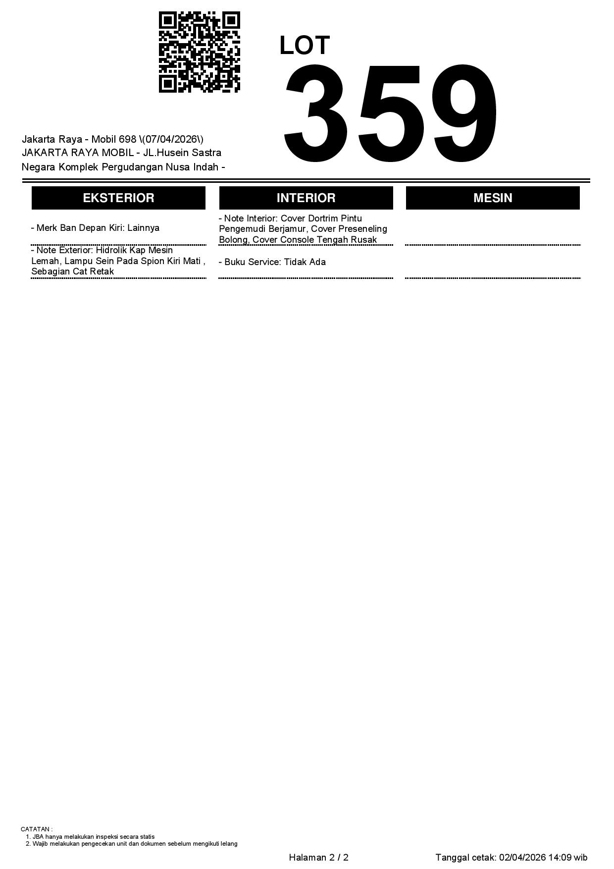 2. Peserta lelang wajib cek unit & dokumen