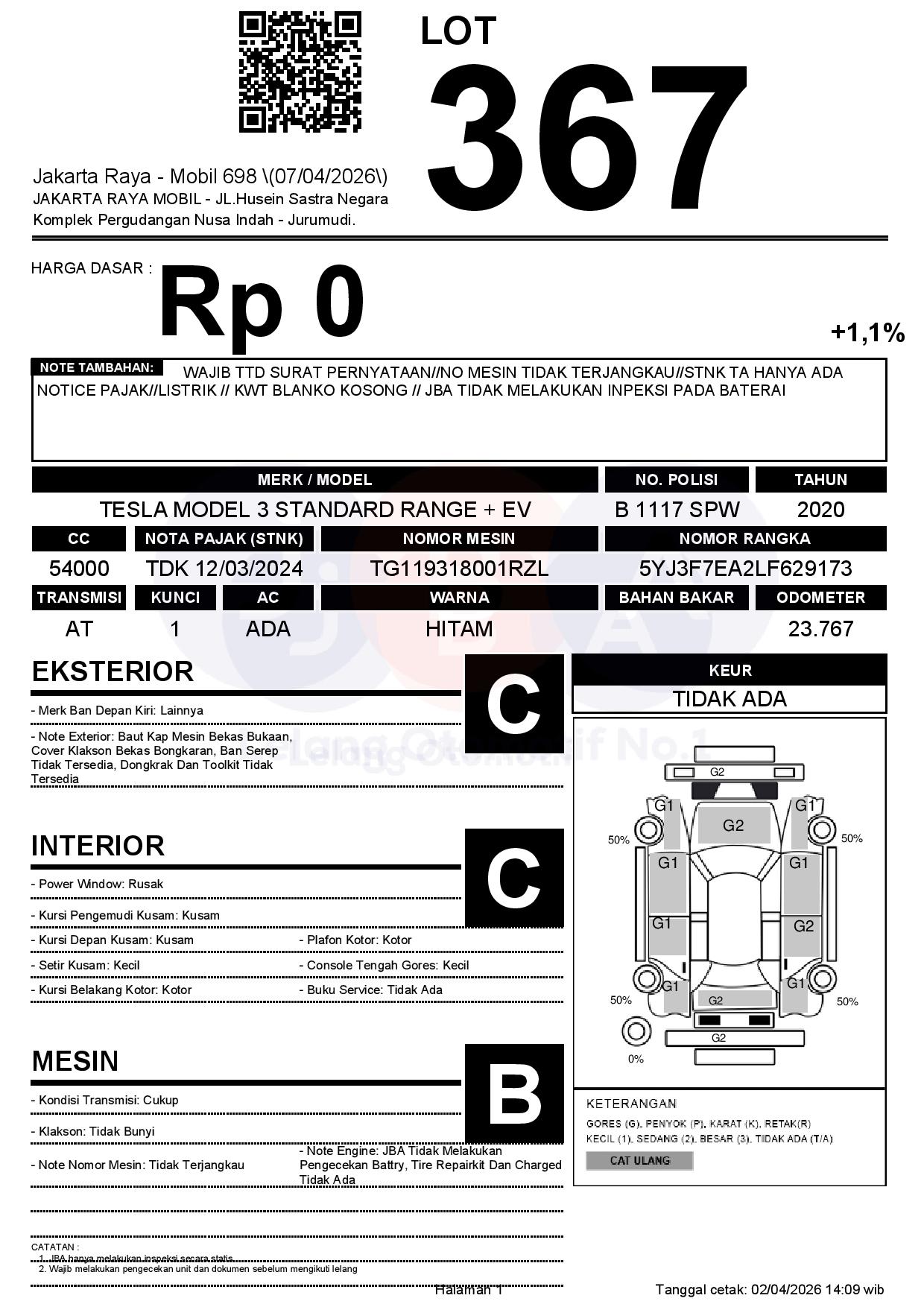 WAJIB TTD SURAT PERNYATAAN//NO MESIN TIDAK TERJANGKAU//STNK TA HANYA ADA NOTICE PAJAK//LISTRIK // KWT BLANKO KOSONG // JBA TIDAK MELAKUKAN INPEKSI PADA BATERAI