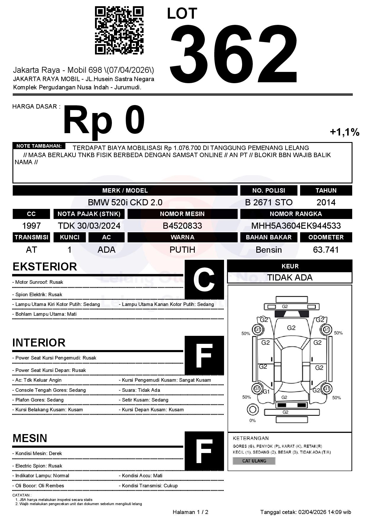 TERDAPAT BIAYA MOBILISASI Rp 1.076.700 DI TANGGUNG PEMENANG LELANG // MASA BERLAKU TNKB FISIK BERBEDA DENGAN SAMSAT ONLINE // AN PT // BLOKIR BBN WAJIB BALIK NAMA //