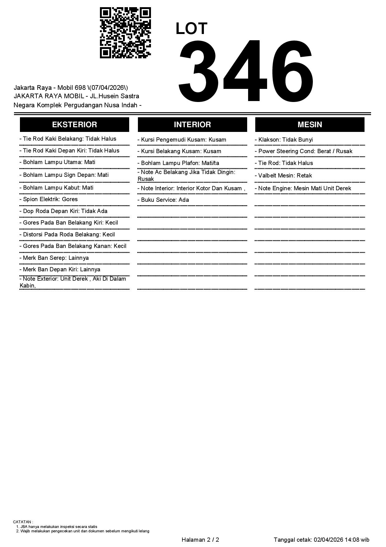 2. Peserta lelang wajib cek unit & dokumen