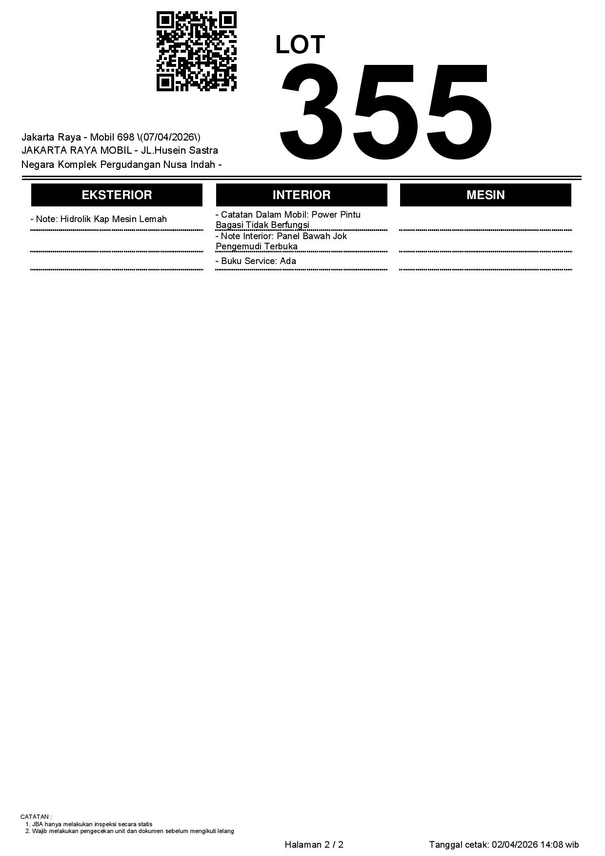 2. Peserta lelang wajib cek unit & dokumen