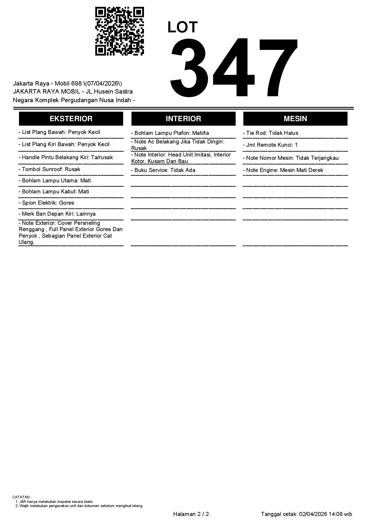 2. Peserta lelang wajib cek unit & dokumen