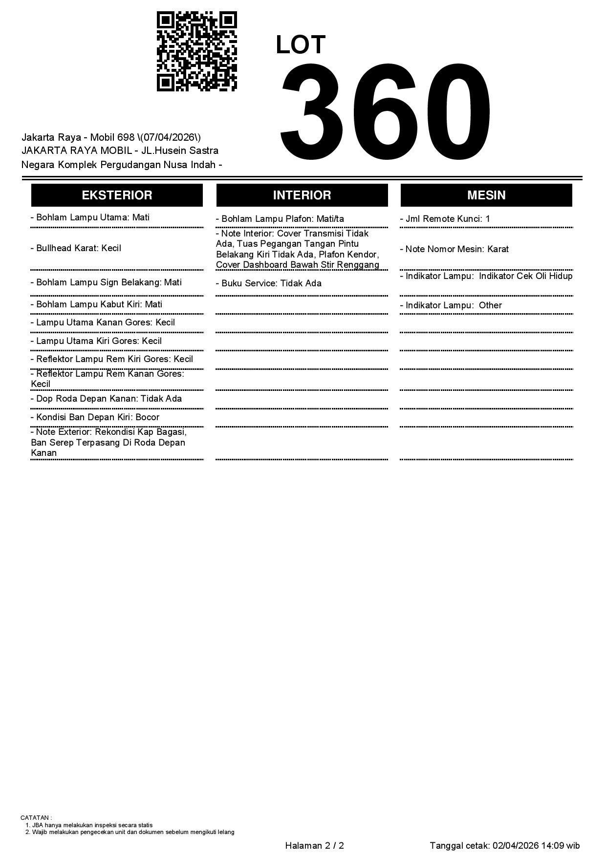 TERDAPAT BIAYA MOBILISASI Rp 1.076.700 DI TANGGUNG PEMENANG LELANG // WAJIB TTD SURAT PERNYATAAN//NO MESIN KARAT//AN PT