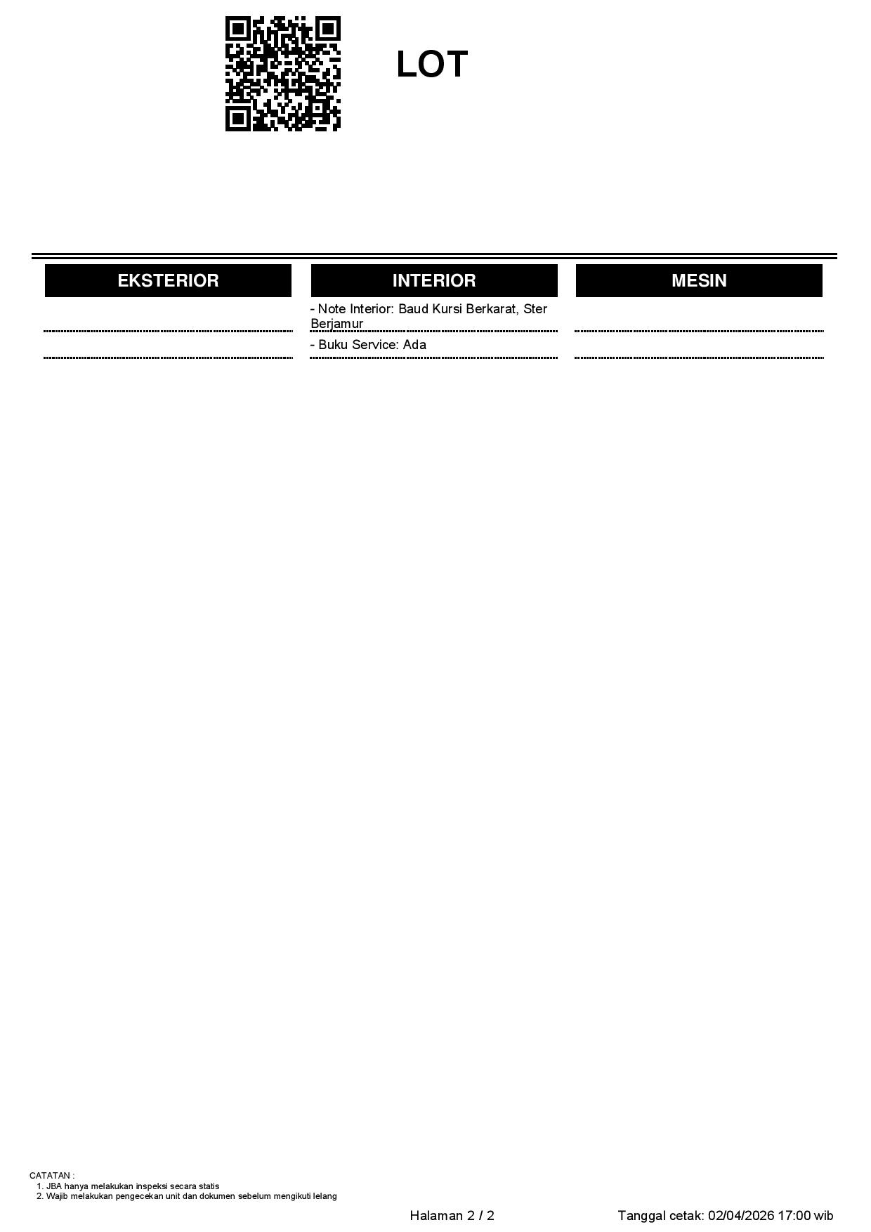 2. Peserta lelang wajib cek unit & dokumen