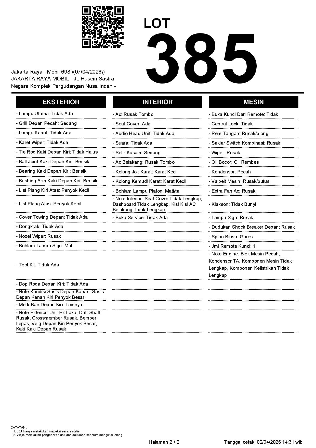 2. Peserta lelang wajib cek unit & dokumen