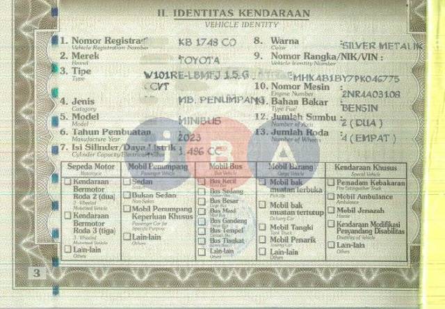 BATAS PELUNASAN 17.00 WIB HARI H LELANG // TERDAPAT BEKAS TIPEX DAN REVISI PADA LEMBAR BPKB IDENTITAS KENDARAAN // WARNA PADA DOKUMEN SILVER METALIK // KENDALA CEK SAMSAT ONLINE //