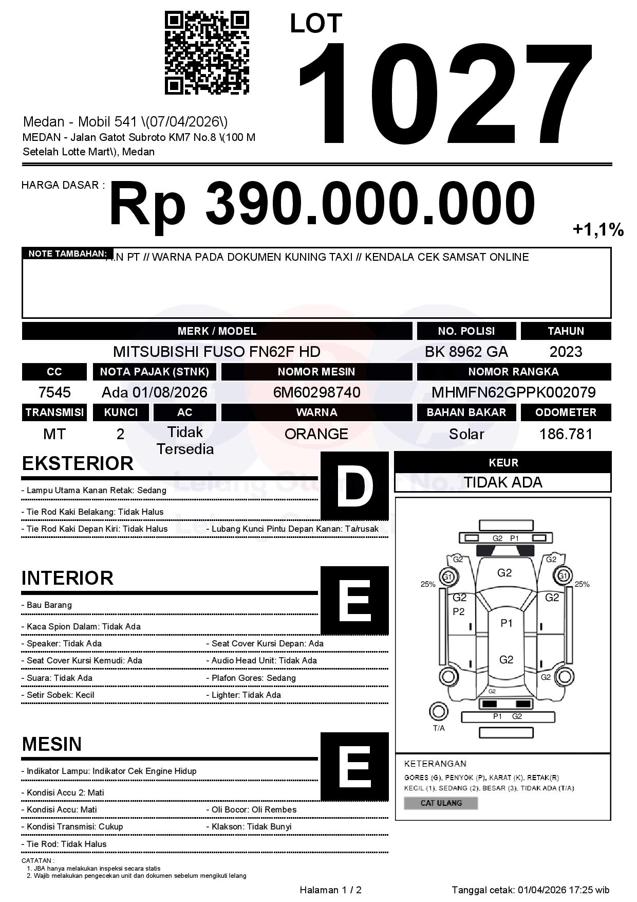 Tanggal Lelang: 07/04/2026 | 14:00 WIB