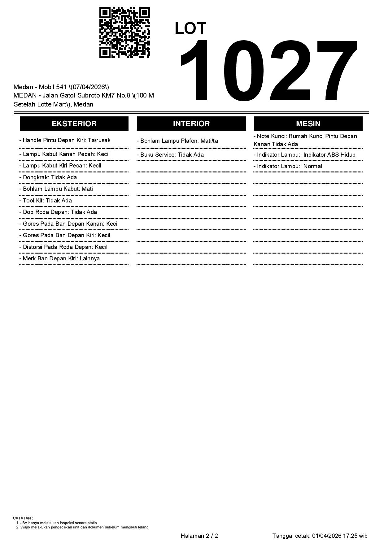 2. Peserta lelang wajib cek unit & dokumen