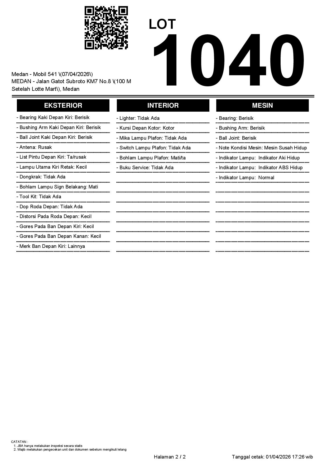 2. Peserta lelang wajib cek unit & dokumen
