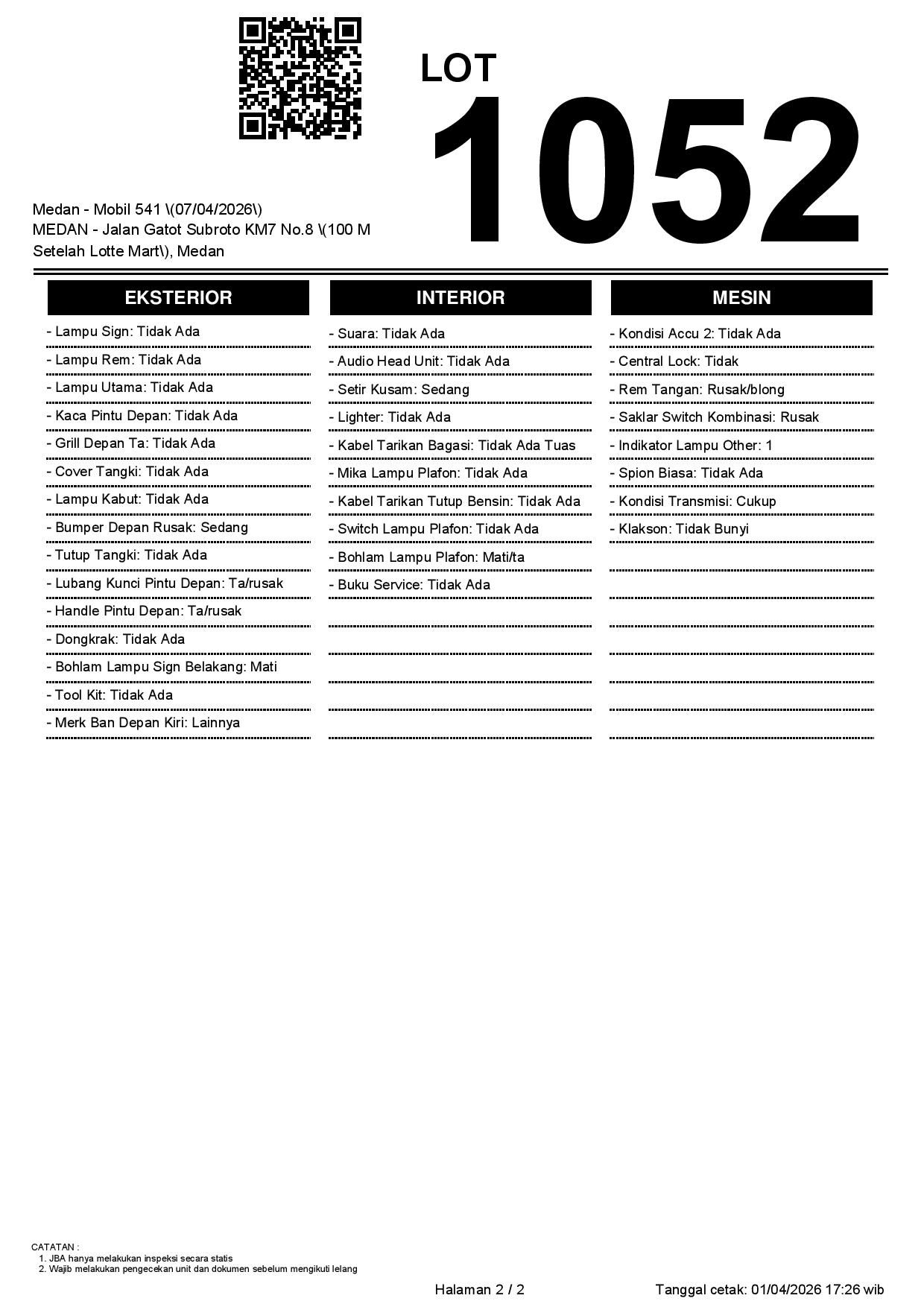 2. Peserta lelang wajib cek unit & dokumen