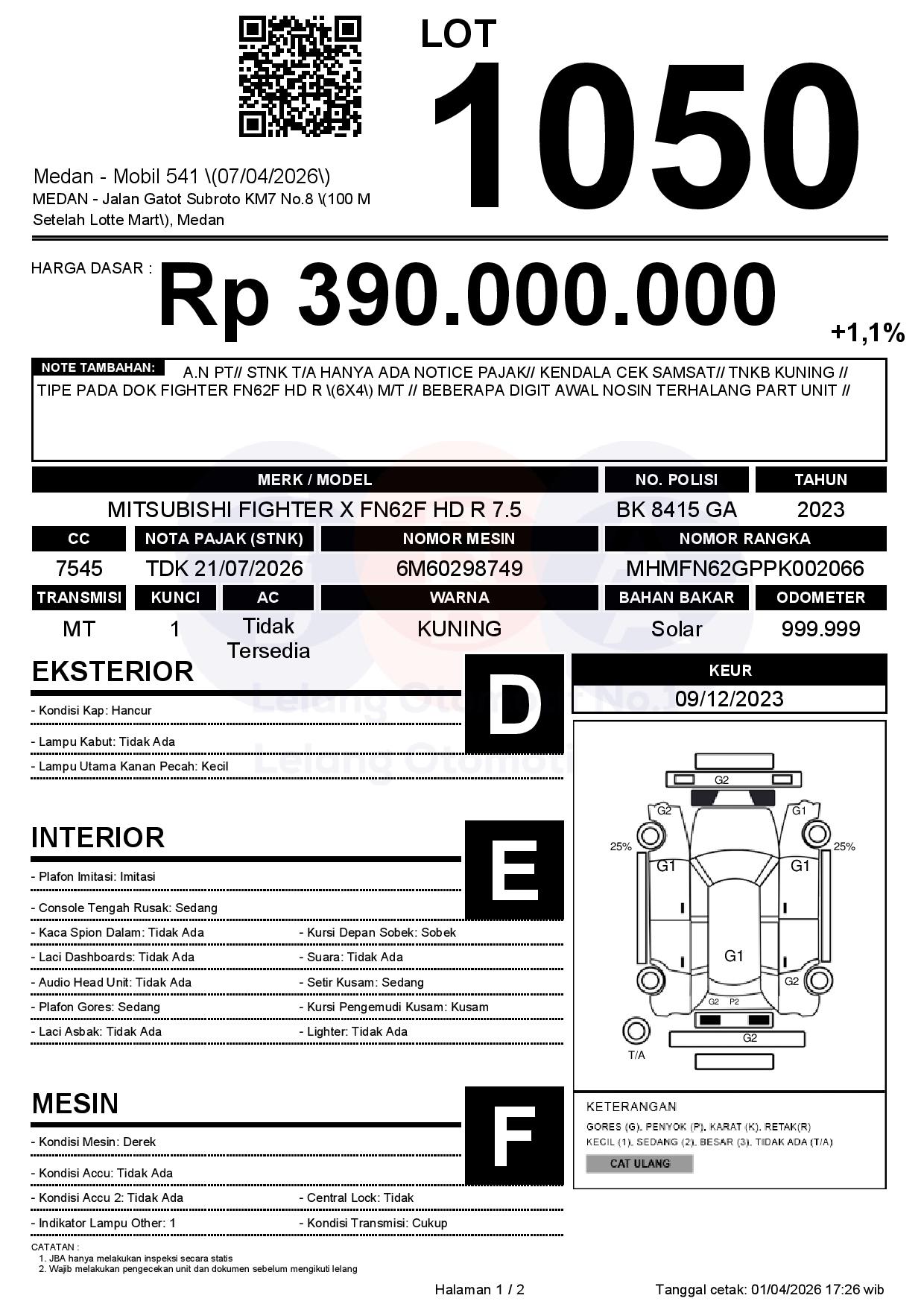 Tanggal Lelang: 07/04/2026 | 14:00 WIB