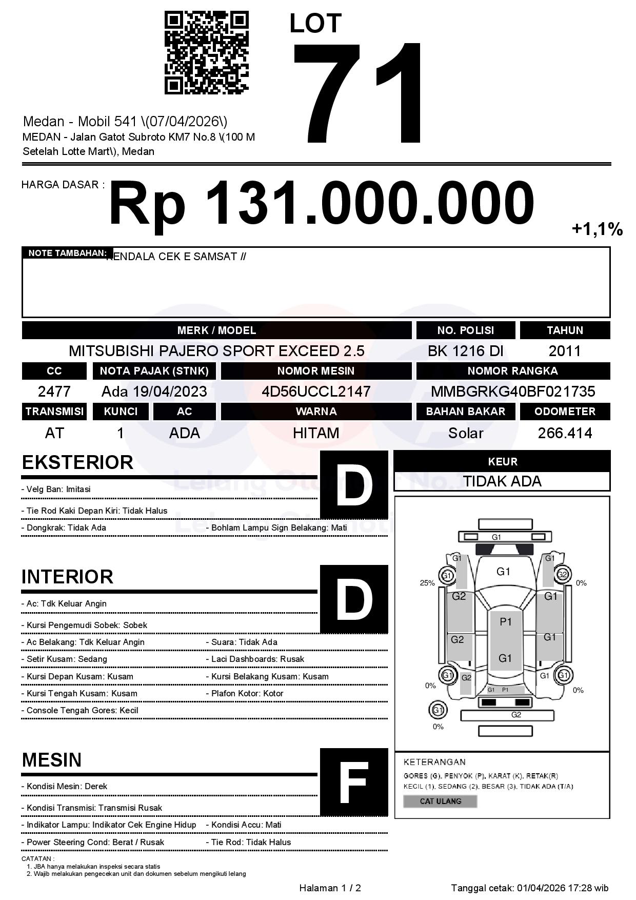 Tanggal Lelang: 07/04/2026 | 13:00 WIB