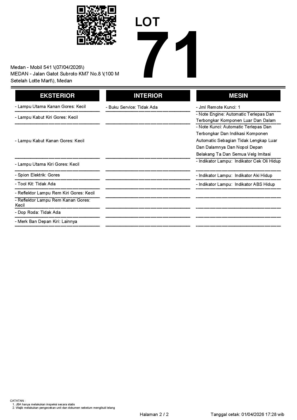 2. Peserta lelang wajib cek unit & dokumen