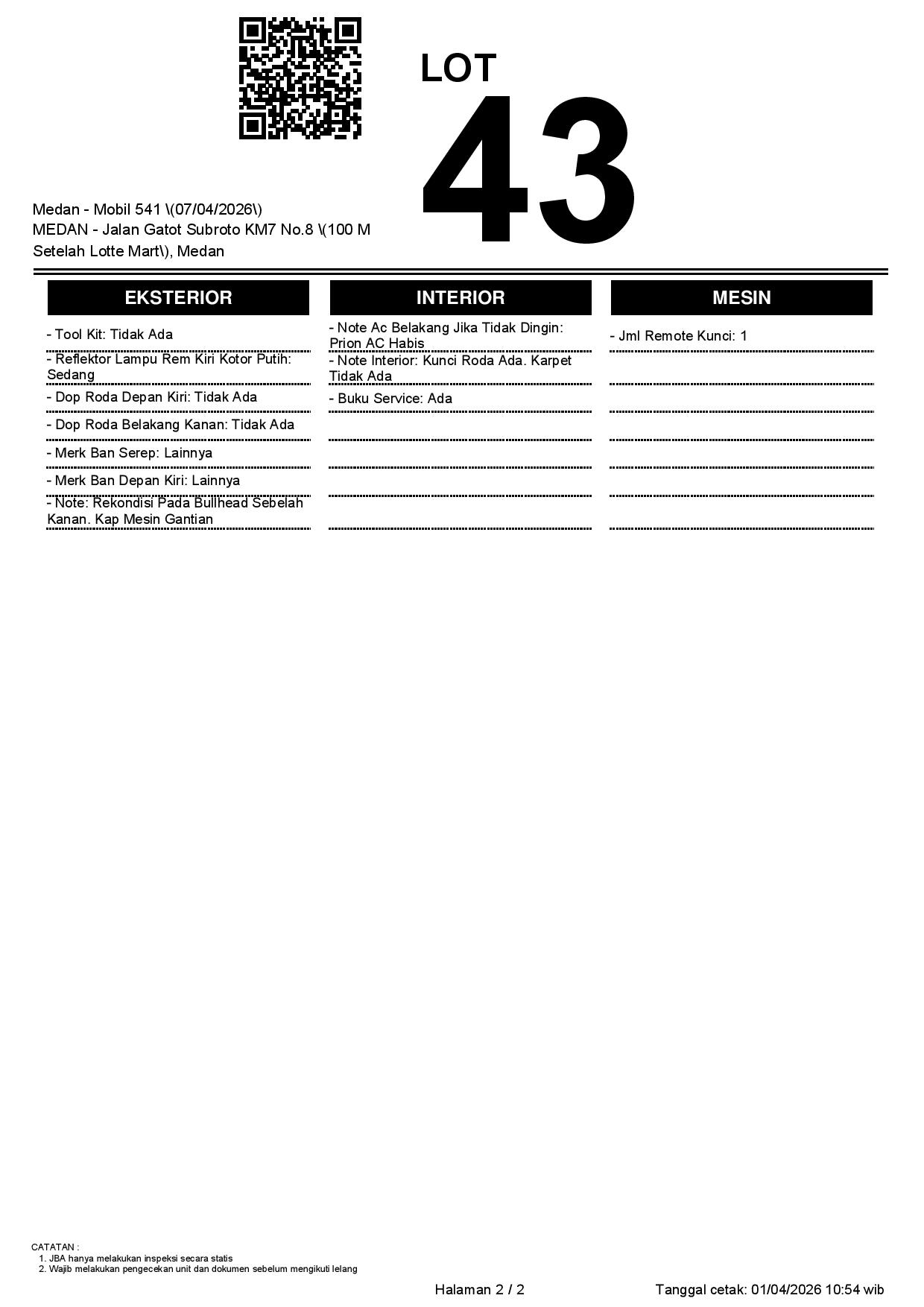 1. Peserta lelang wajib cek unit & dokumen