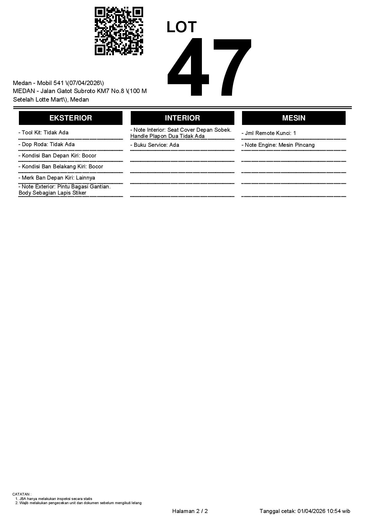 1. Peserta lelang wajib cek unit & dokumen