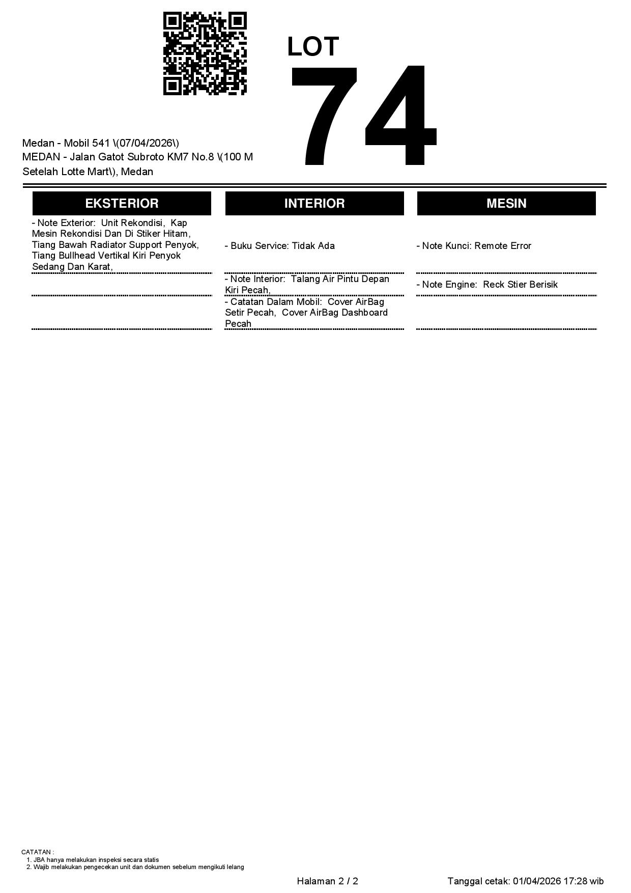 2. Peserta lelang wajib cek unit & dokumen