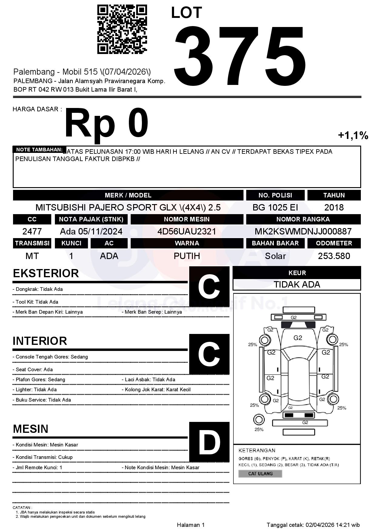 BATAS PELUNASAN 17:00 WIB HARI H LELANG // AN CV // TERDAPAT BEKAS TIPEX PADA PENULISAN TANGGAL FAKTUR DIBPKB //