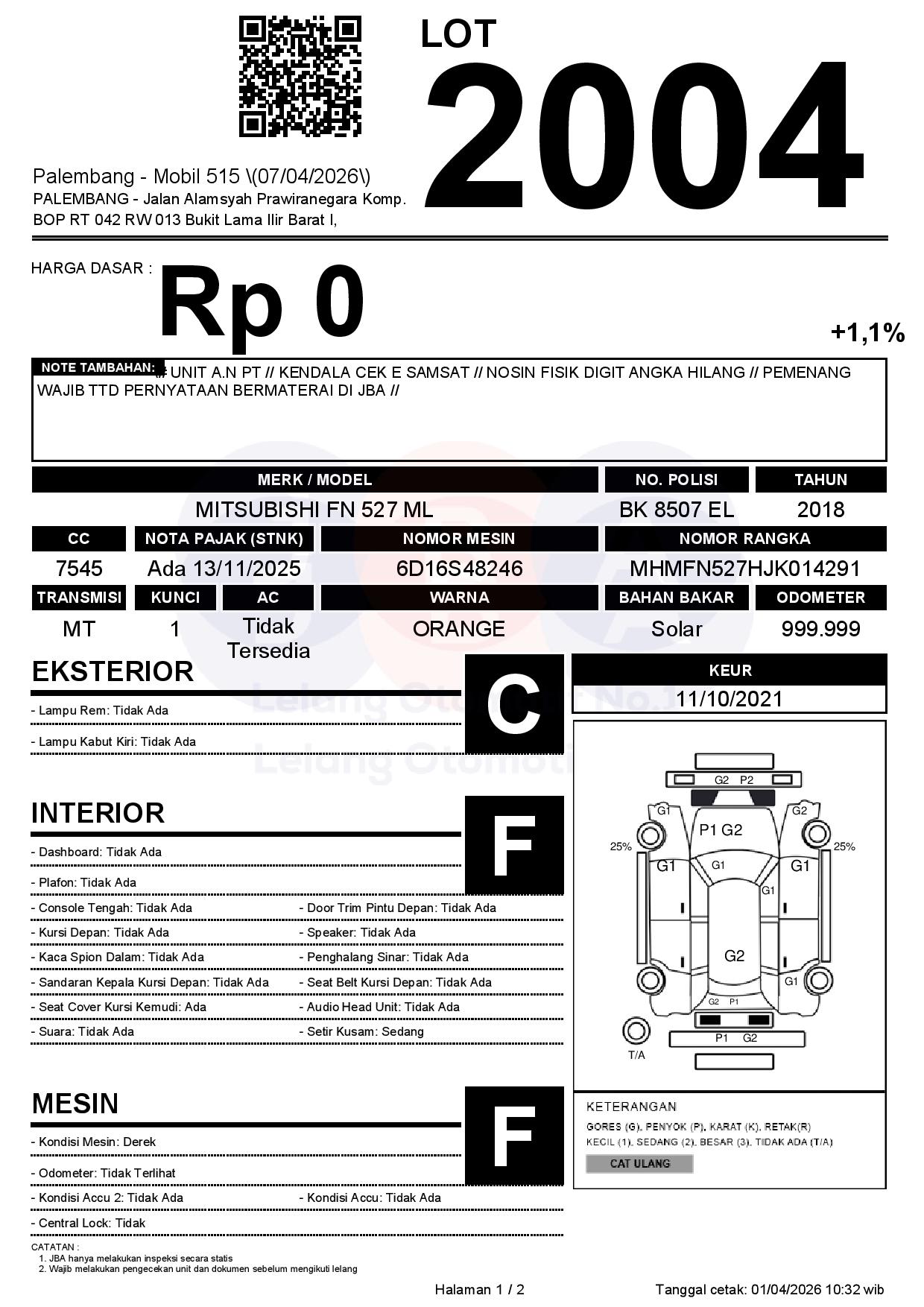 Tanggal Lelang: 07/04/2026 | 14:00 WIB