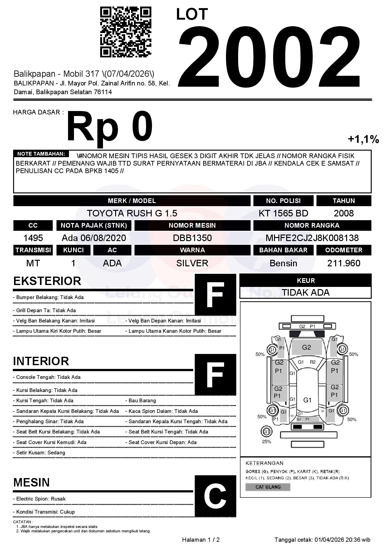 Tanggal Lelang: 07/04/2026 | 14:00 WITA