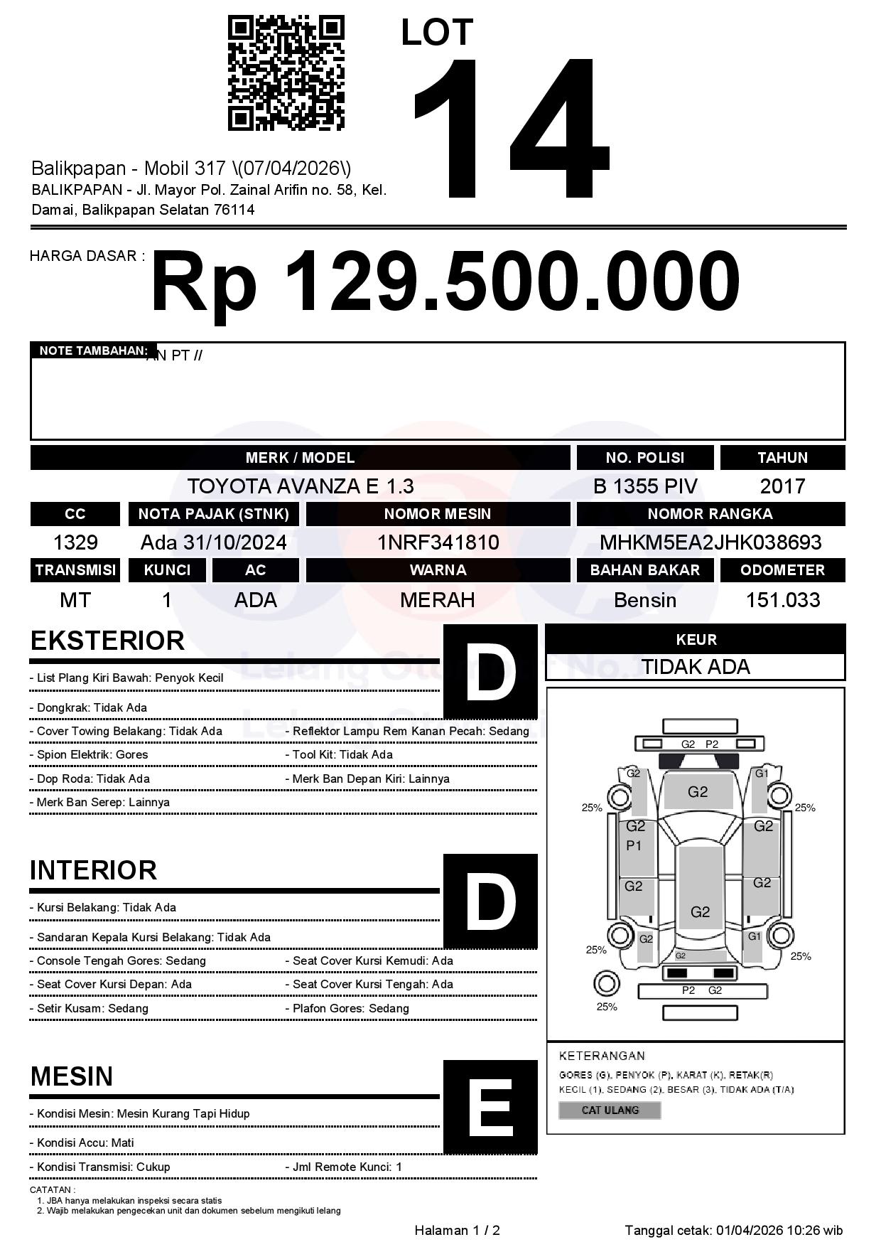 Tanggal Lelang: 07/04/2026 | 13:00 WITA