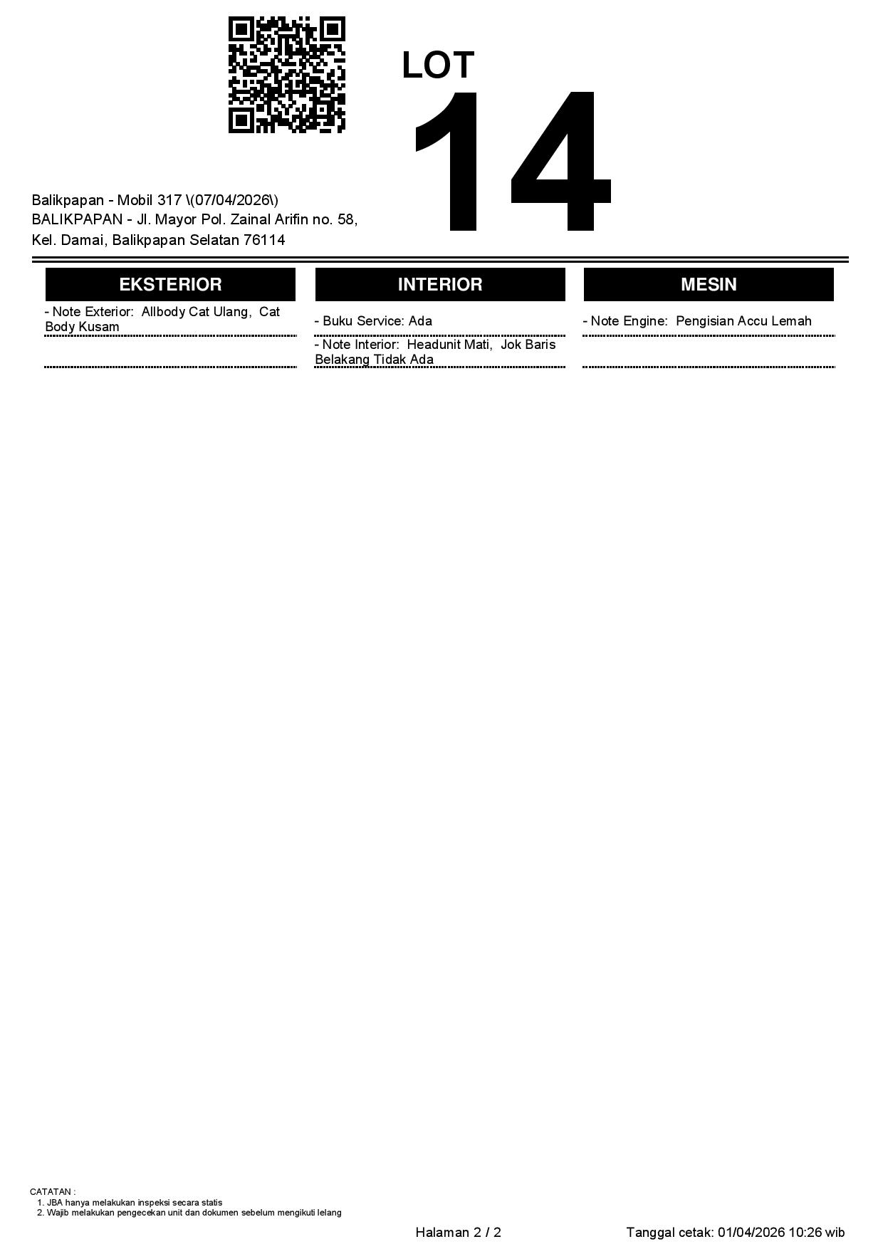 1. Peserta lelang wajib cek unit & dokumen