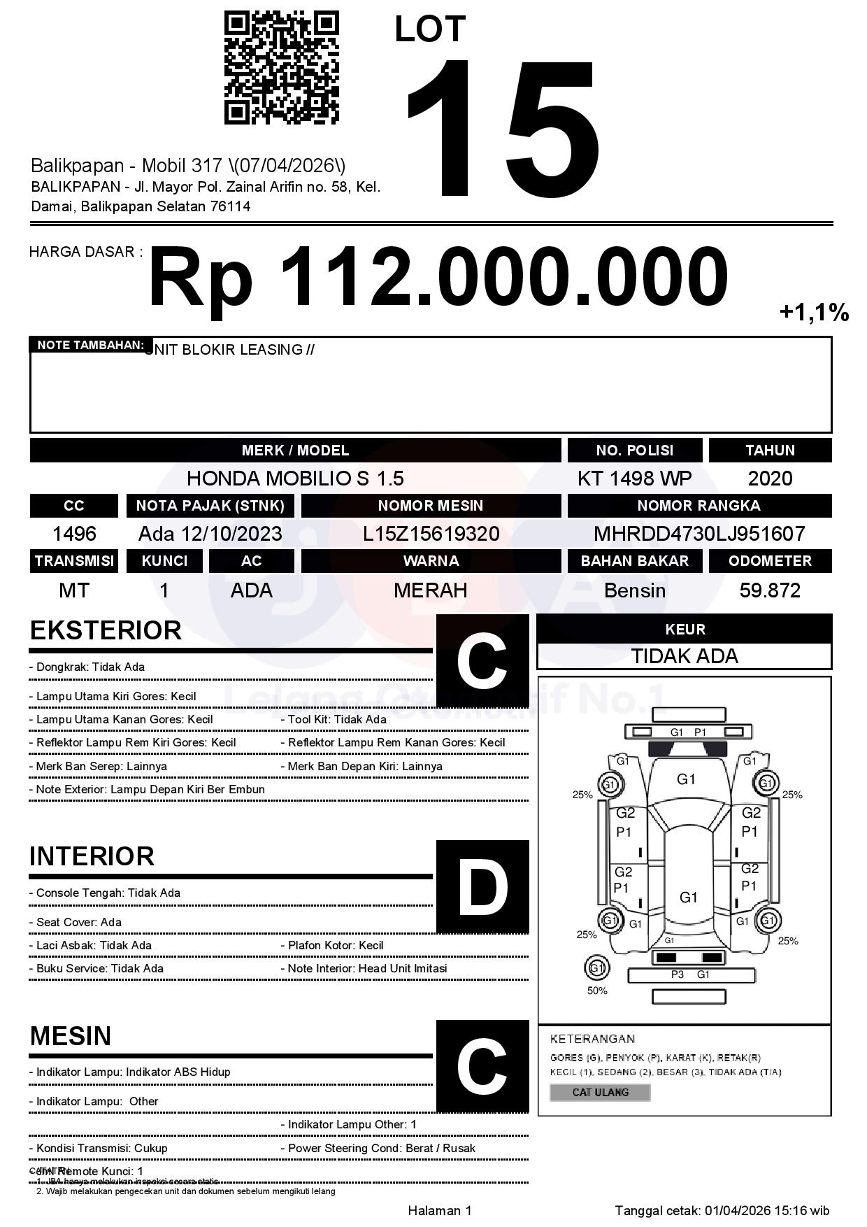 Tanggal Lelang: 07/04/2026 | 13:00 WITA