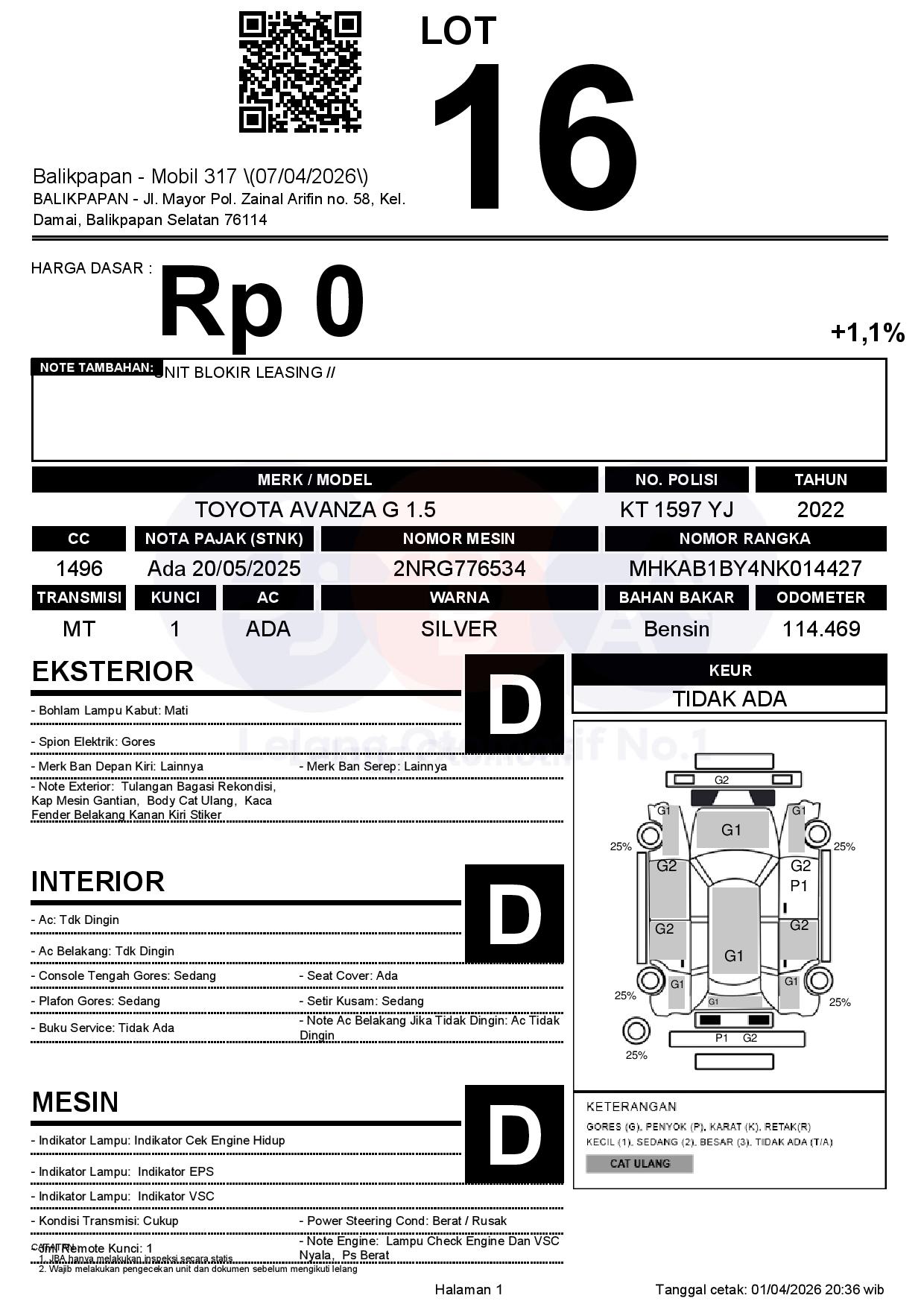 Tanggal Lelang: 07/04/2026 | 13:00 WITA