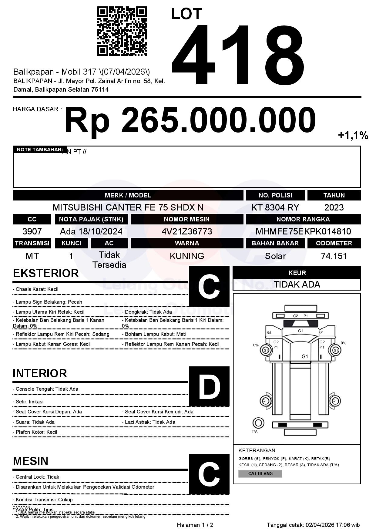 Tanggal Lelang: 07/04/2026 | 13:00 WITA