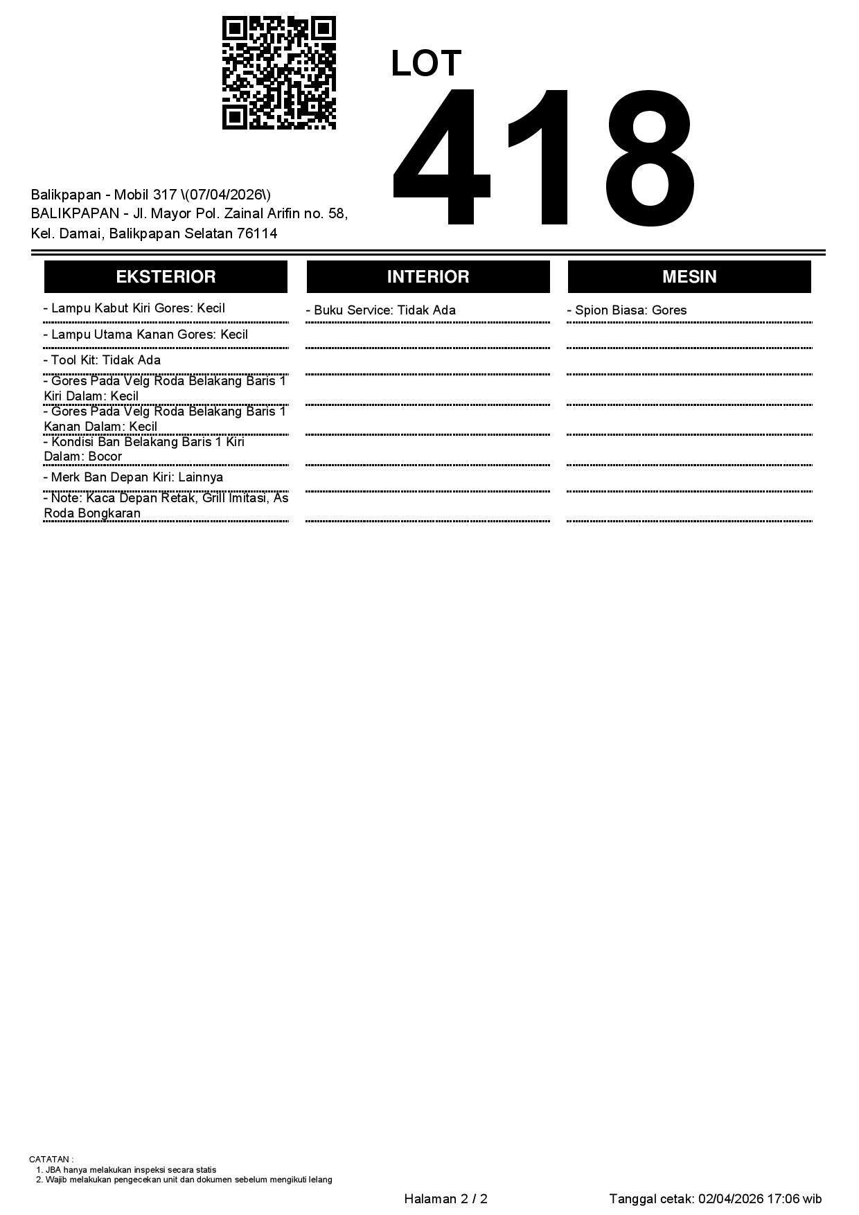 2. Peserta lelang wajib cek unit & dokumen