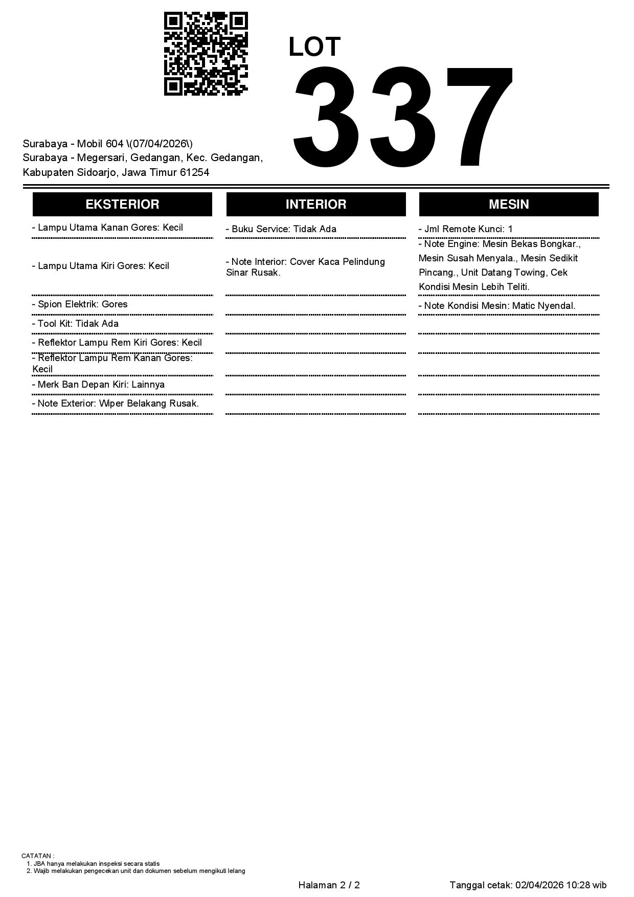 1. Peserta lelang wajib cek unit & dokumen