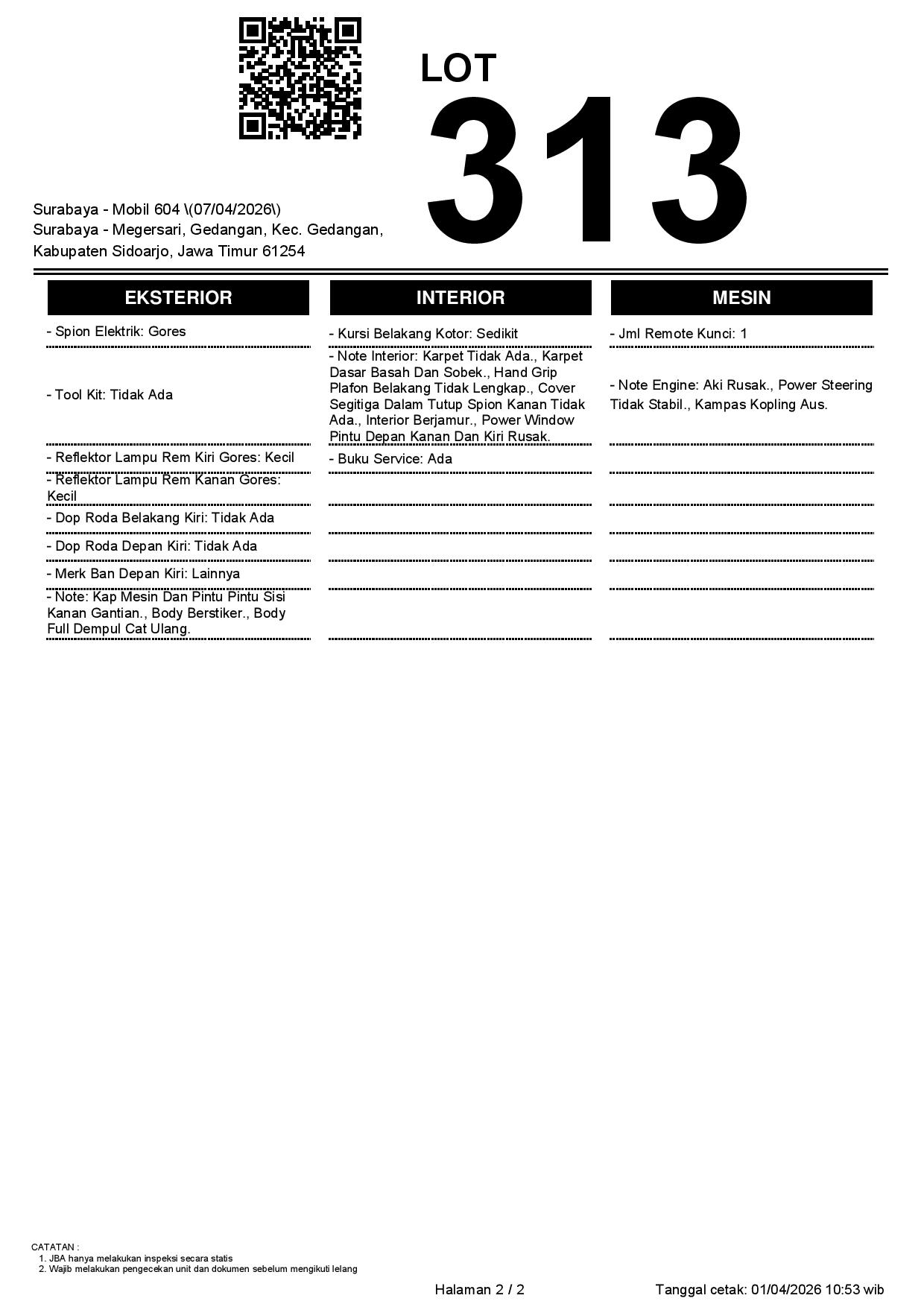 1. Peserta lelang wajib cek unit & dokumen