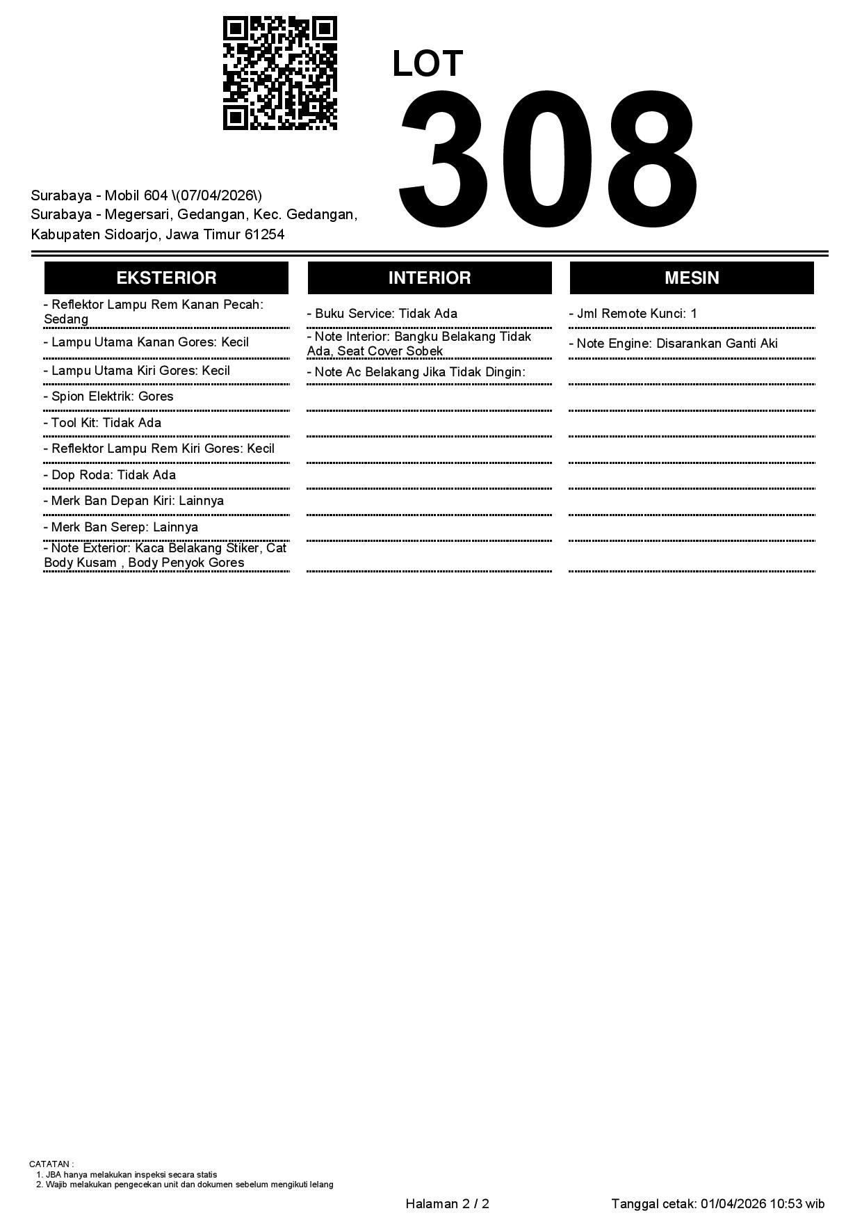 1. Peserta lelang wajib cek unit & dokumen