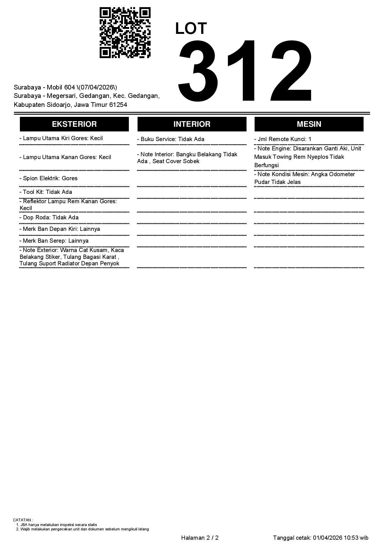 1. Peserta lelang wajib cek unit & dokumen