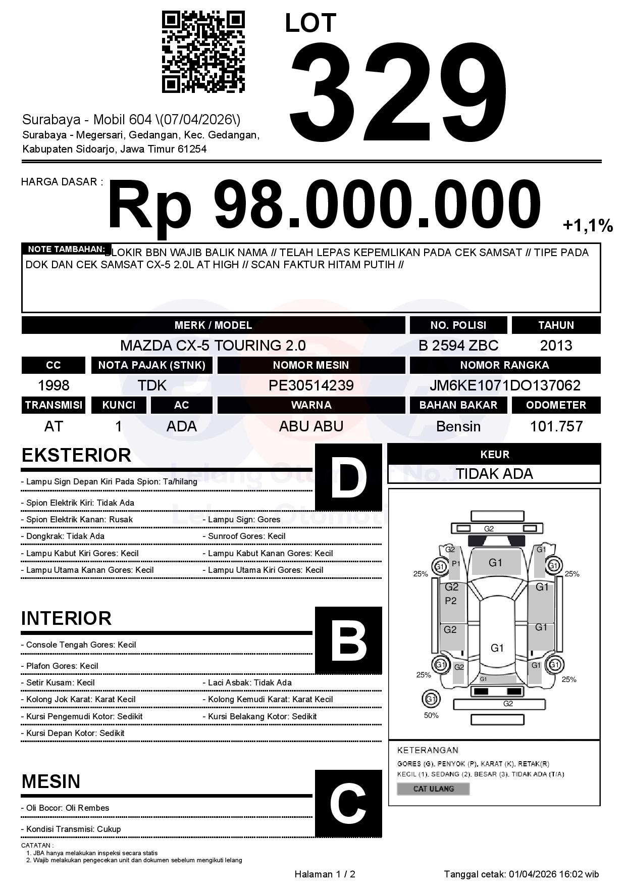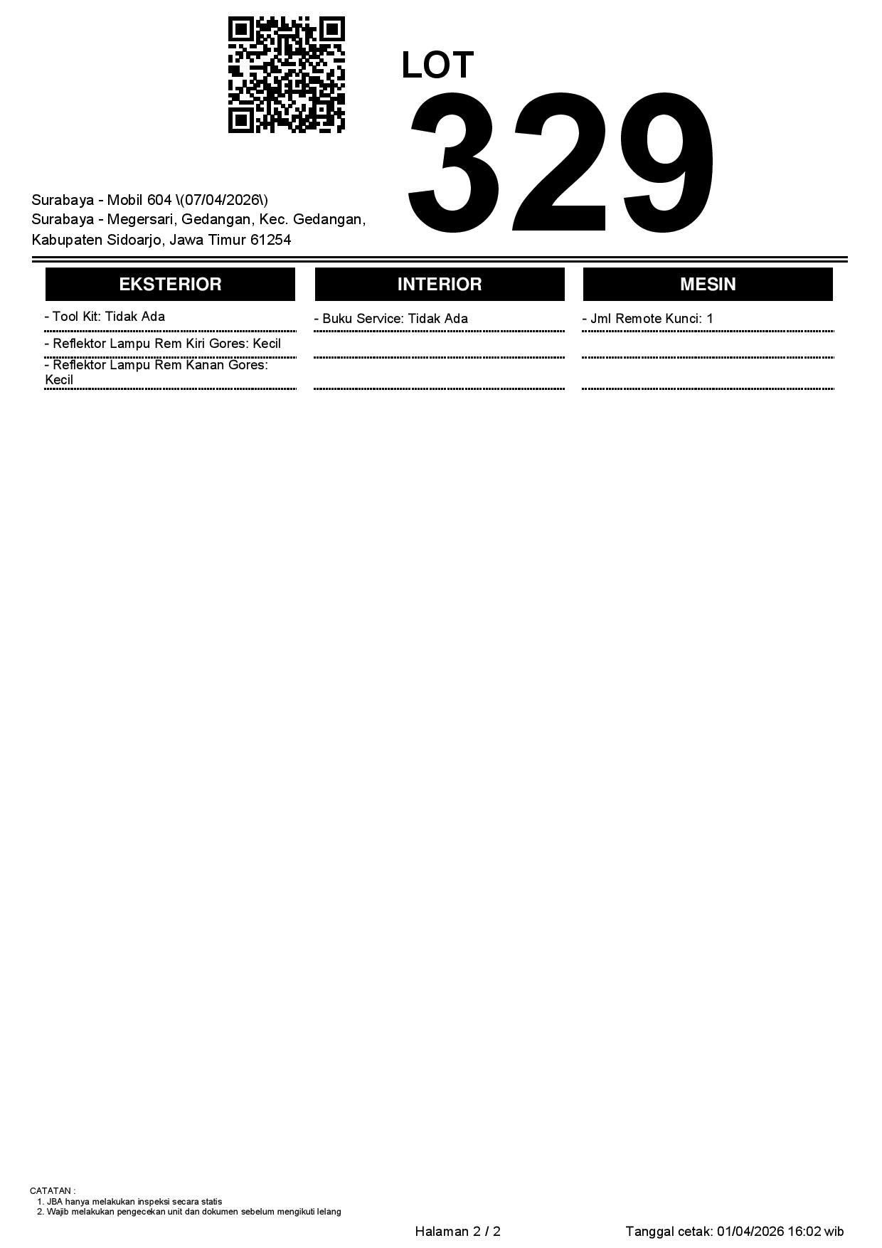 Tanggal Lelang: 07/04/2026 | 13:00 WIB