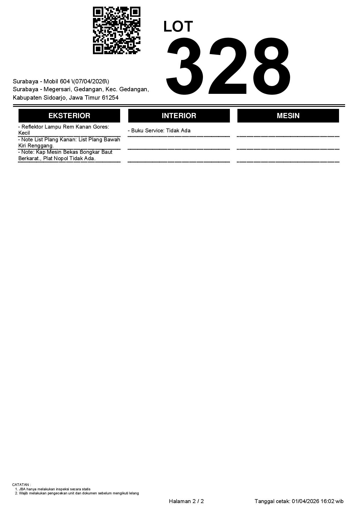 2. Peserta lelang wajib cek unit & dokumen