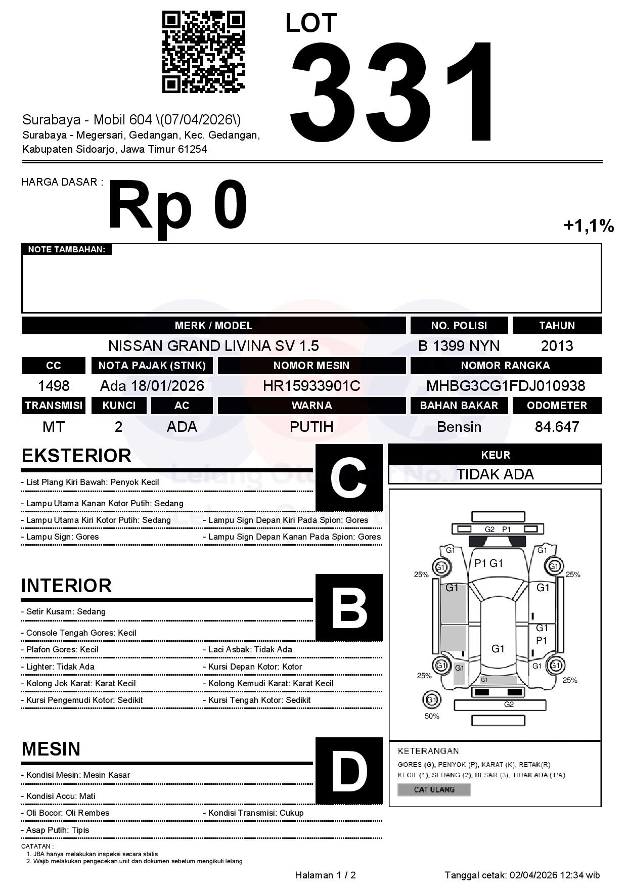 Tanggal Lelang: 07/04/2026 | 13:00 WIB