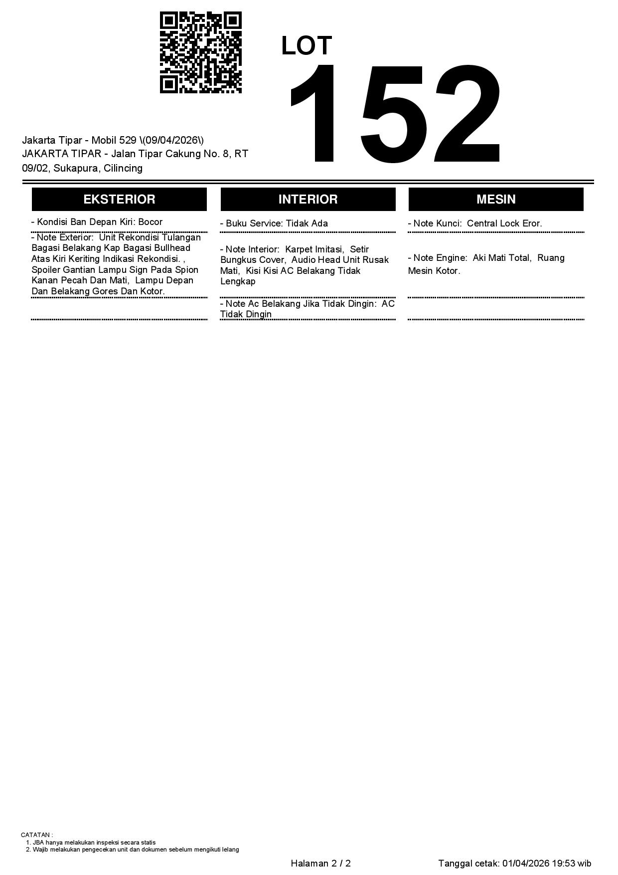 2. Peserta lelang wajib cek unit & dokumen