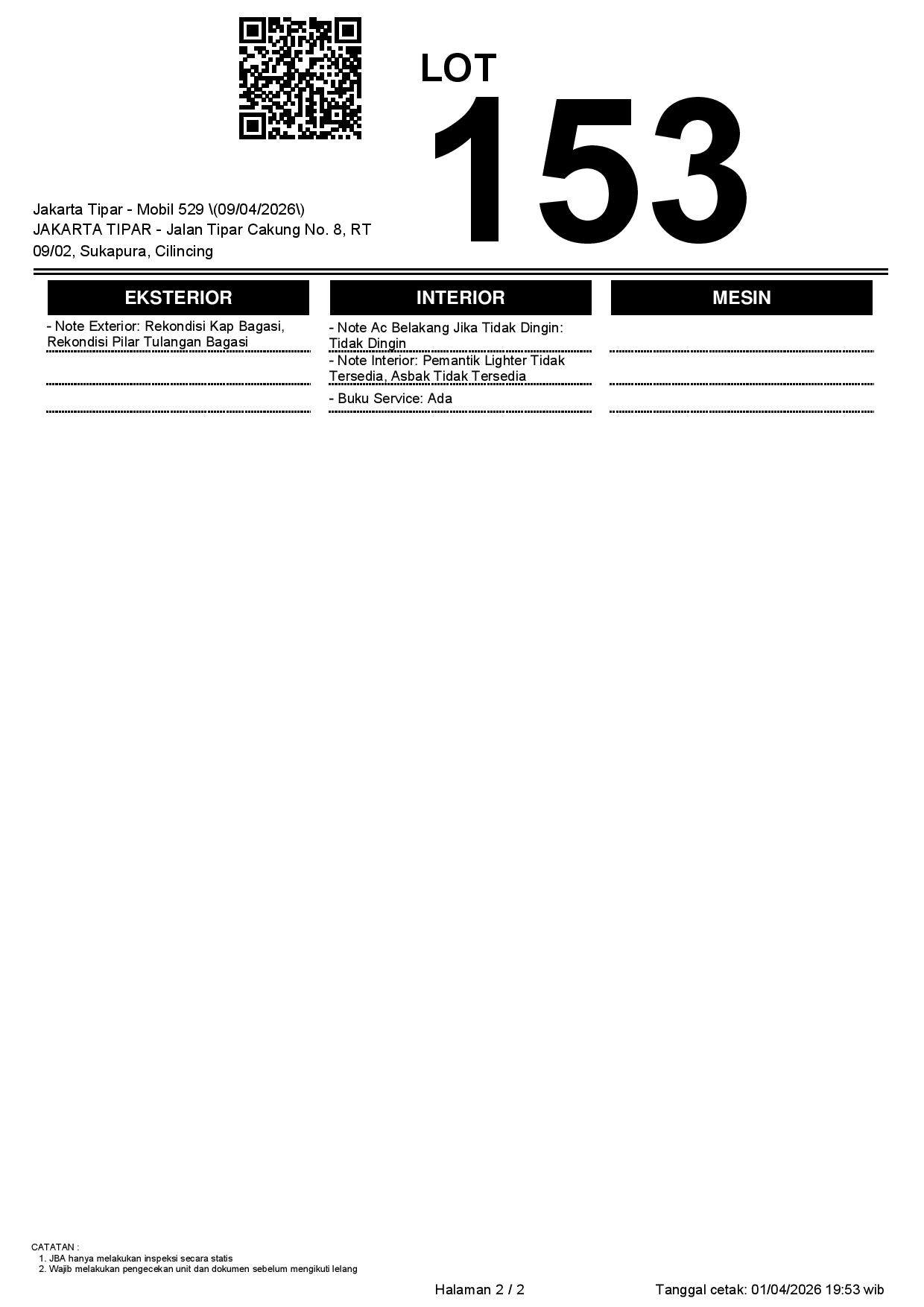 2. Peserta lelang wajib cek unit & dokumen