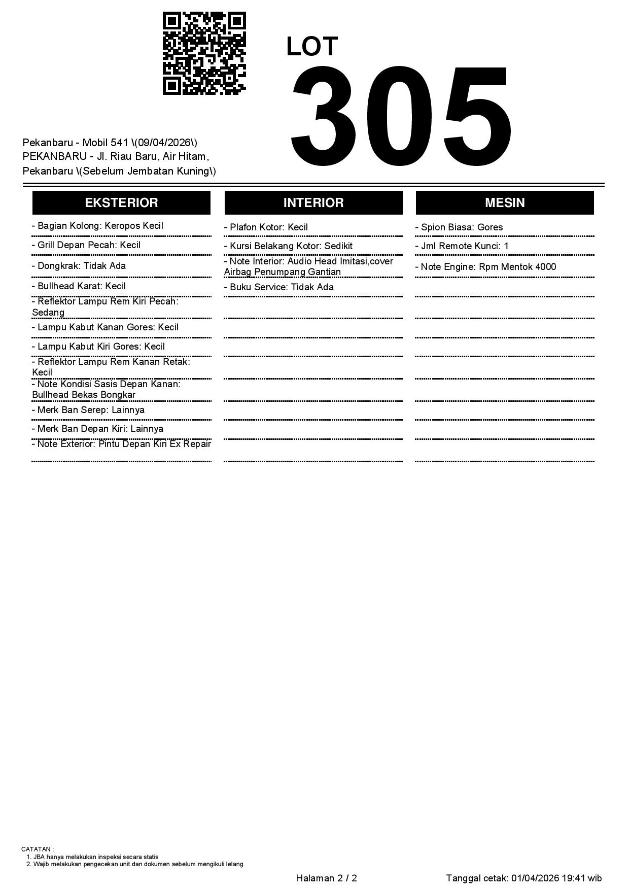 2. Peserta lelang wajib cek unit & dokumen