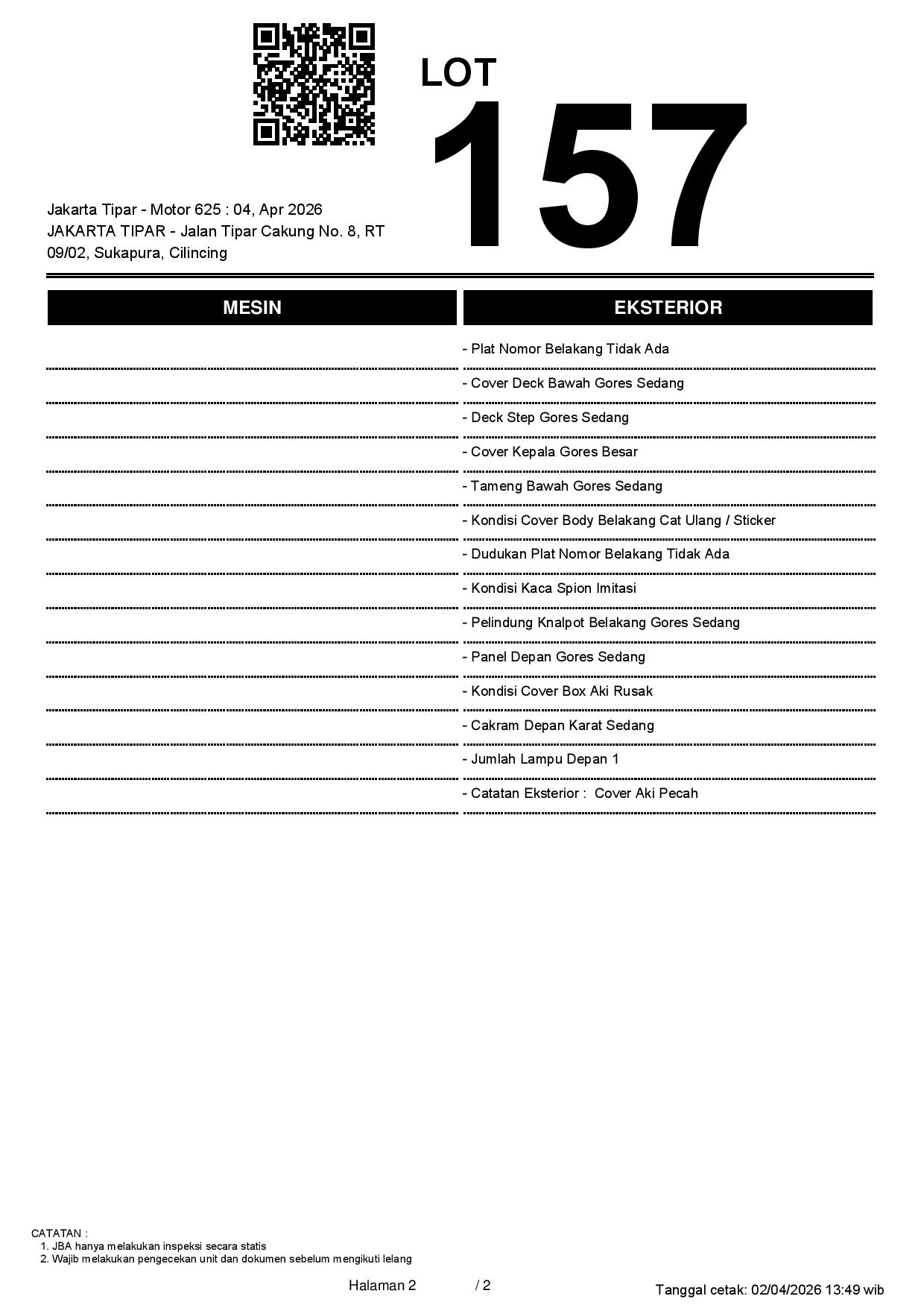 1. Peserta lelang wajib cek unit & dokumen