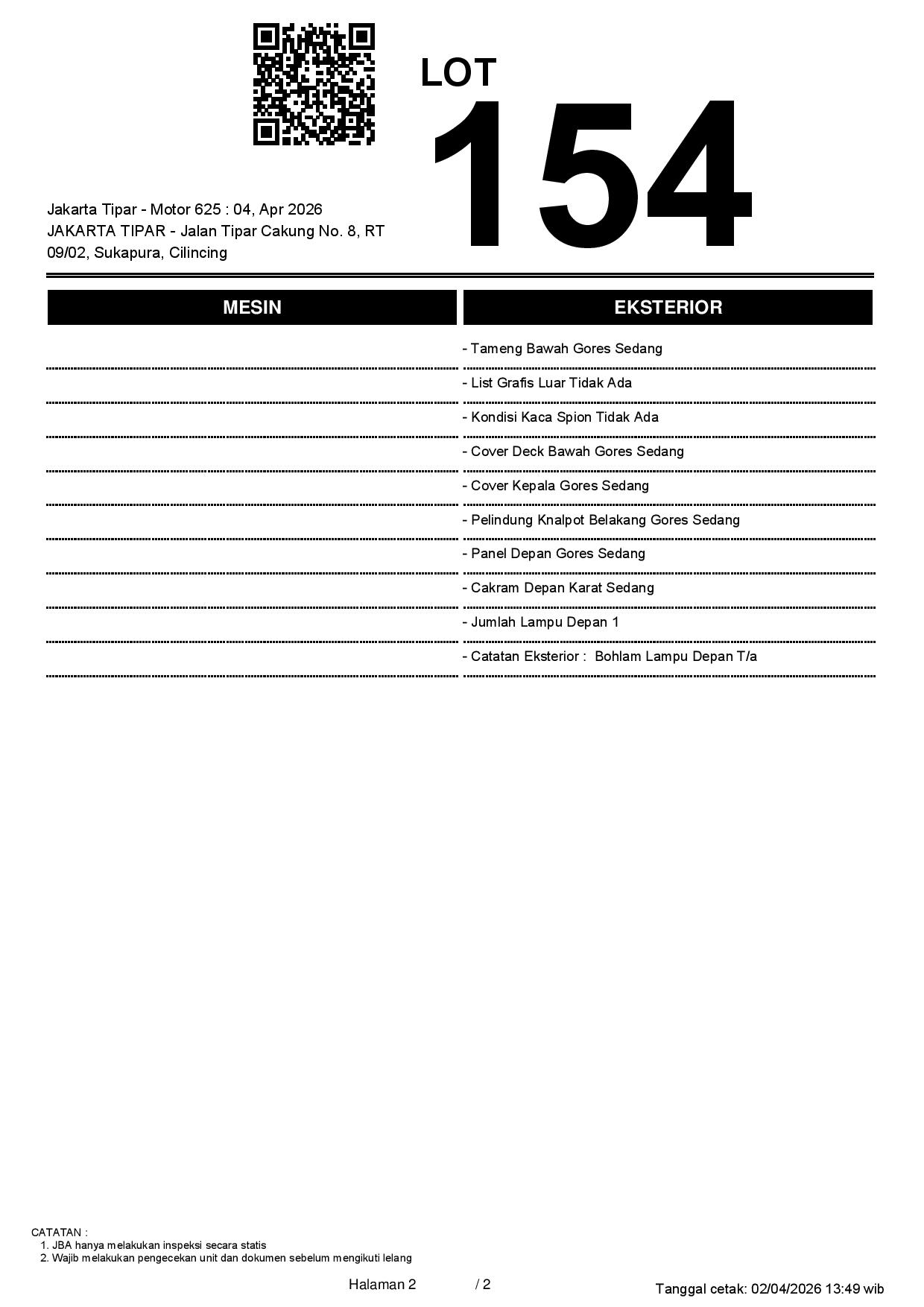 1. Peserta lelang wajib cek unit & dokumen