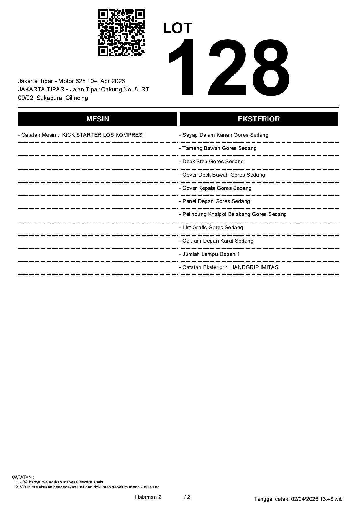 1. Peserta lelang wajib cek unit & dokumen