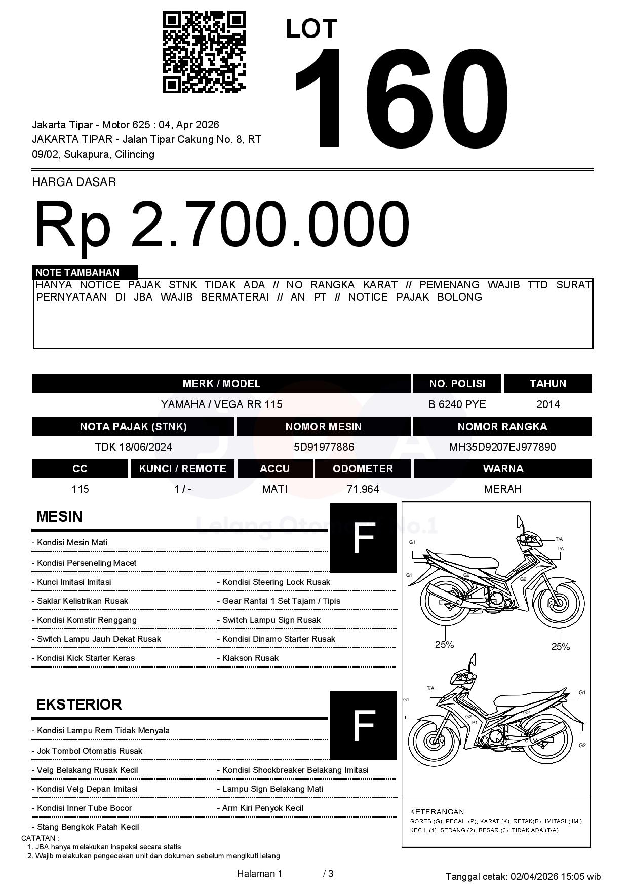 HANYA NOTICE PAJAK STNK TIDAK ADA // NO RANGKA KARAT // PEMENANG WAJIB TTD SURAT PERNYATAAN DI JBA WAJIB BERMATERAI // AN PT // NOTICE PAJAK BOLONG