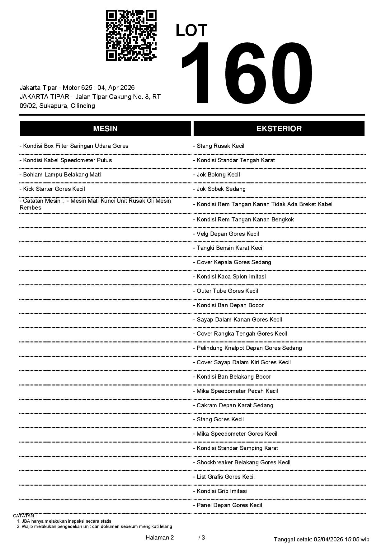 1. Peserta lelang wajib cek unit & dokumen