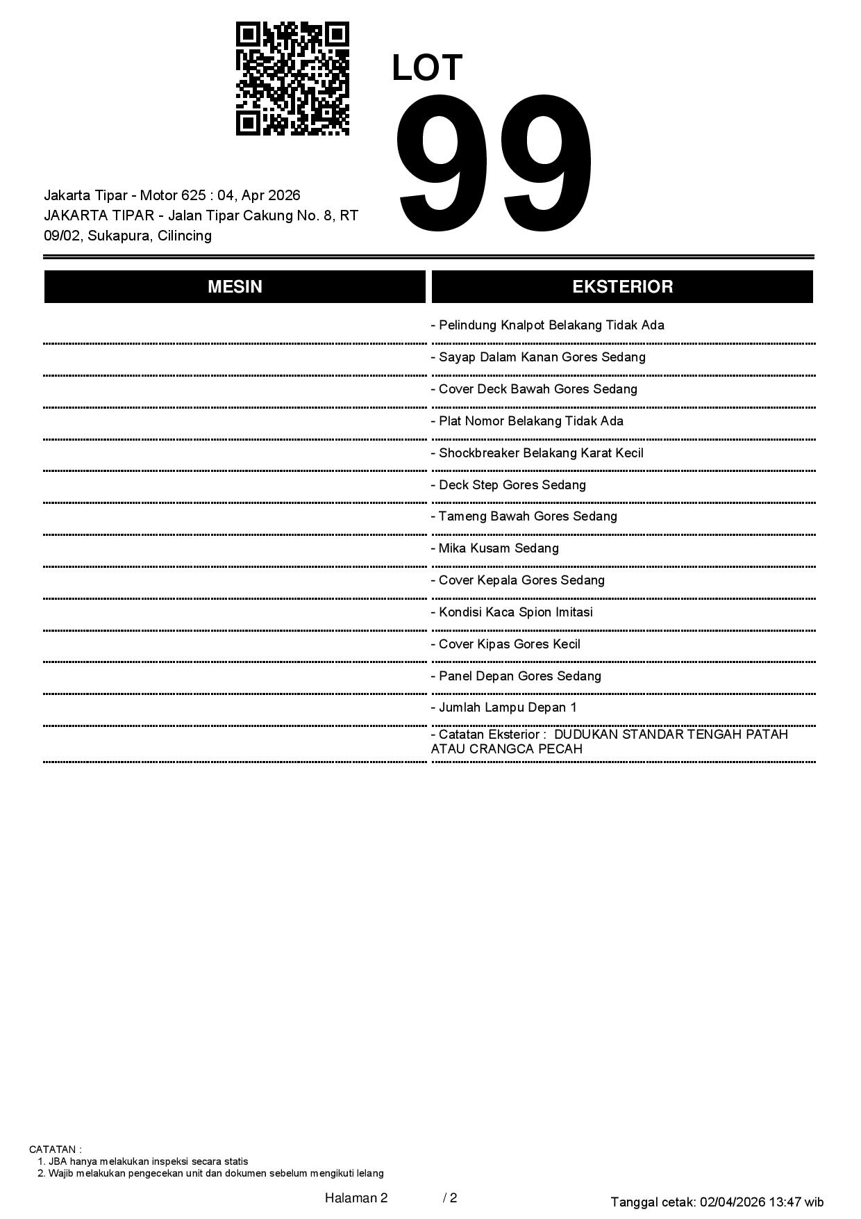 1. Peserta lelang wajib cek unit & dokumen