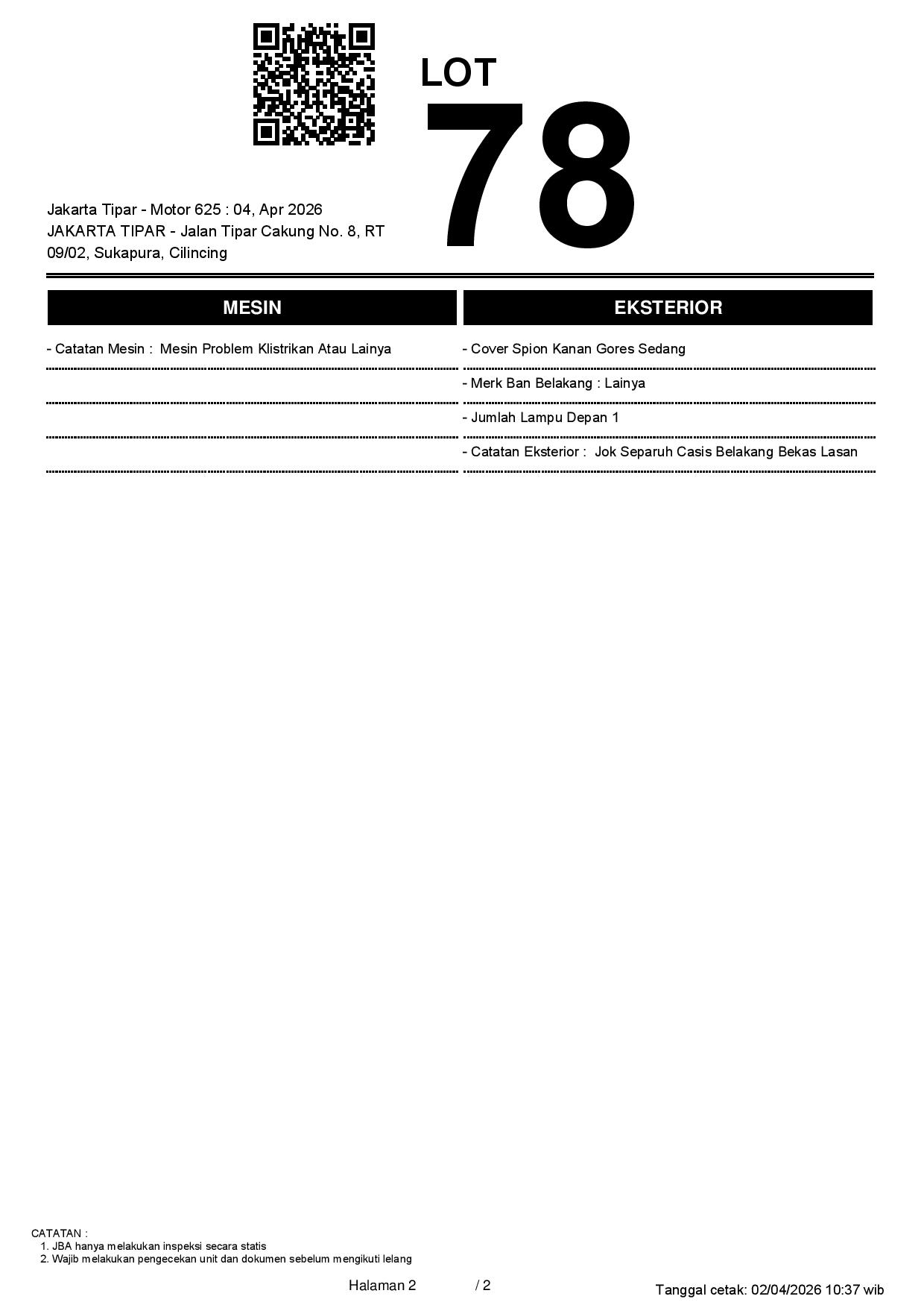 1. Peserta lelang wajib cek unit & dokumen