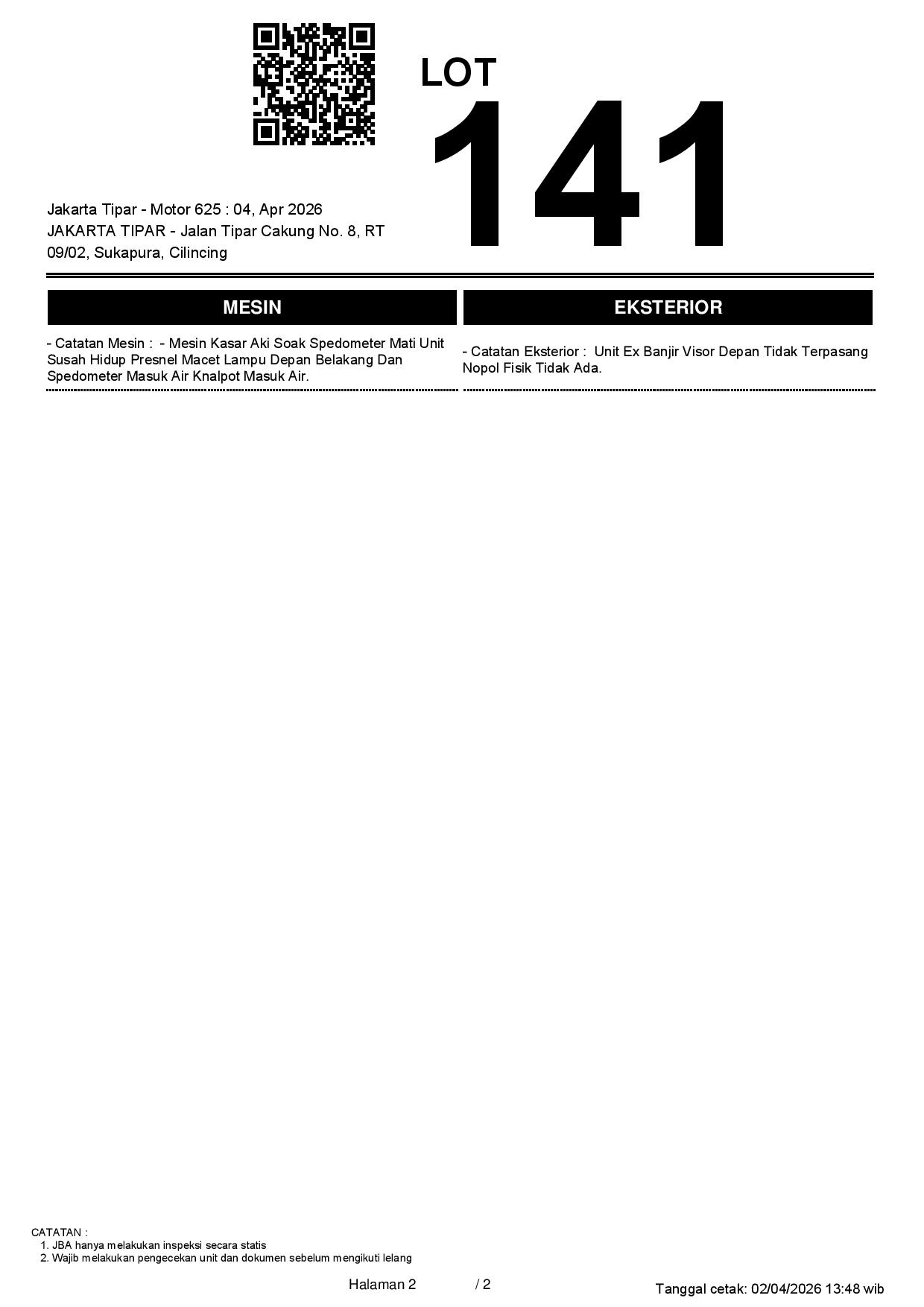 1. Peserta lelang wajib cek unit & dokumen