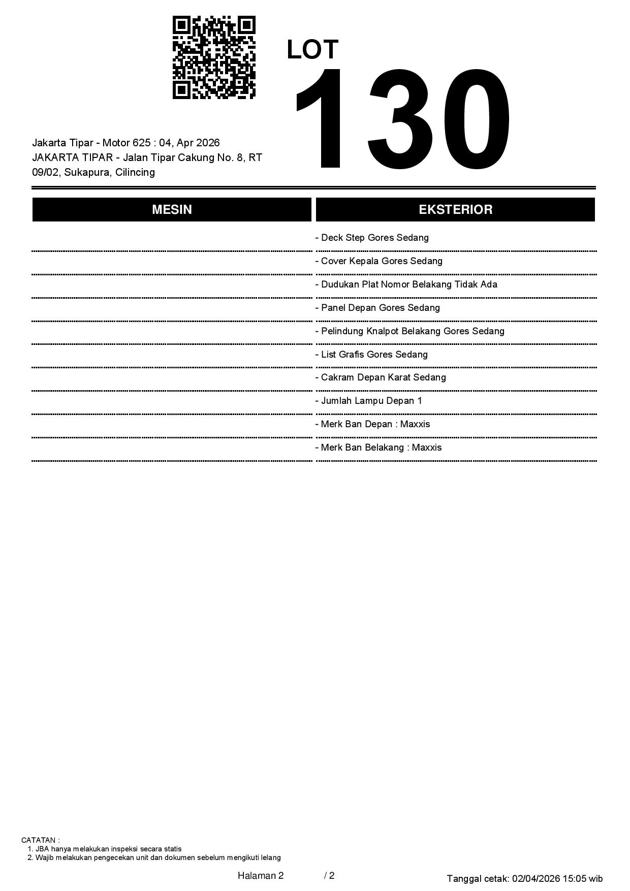 2. Peserta lelang wajib cek unit & dokumen